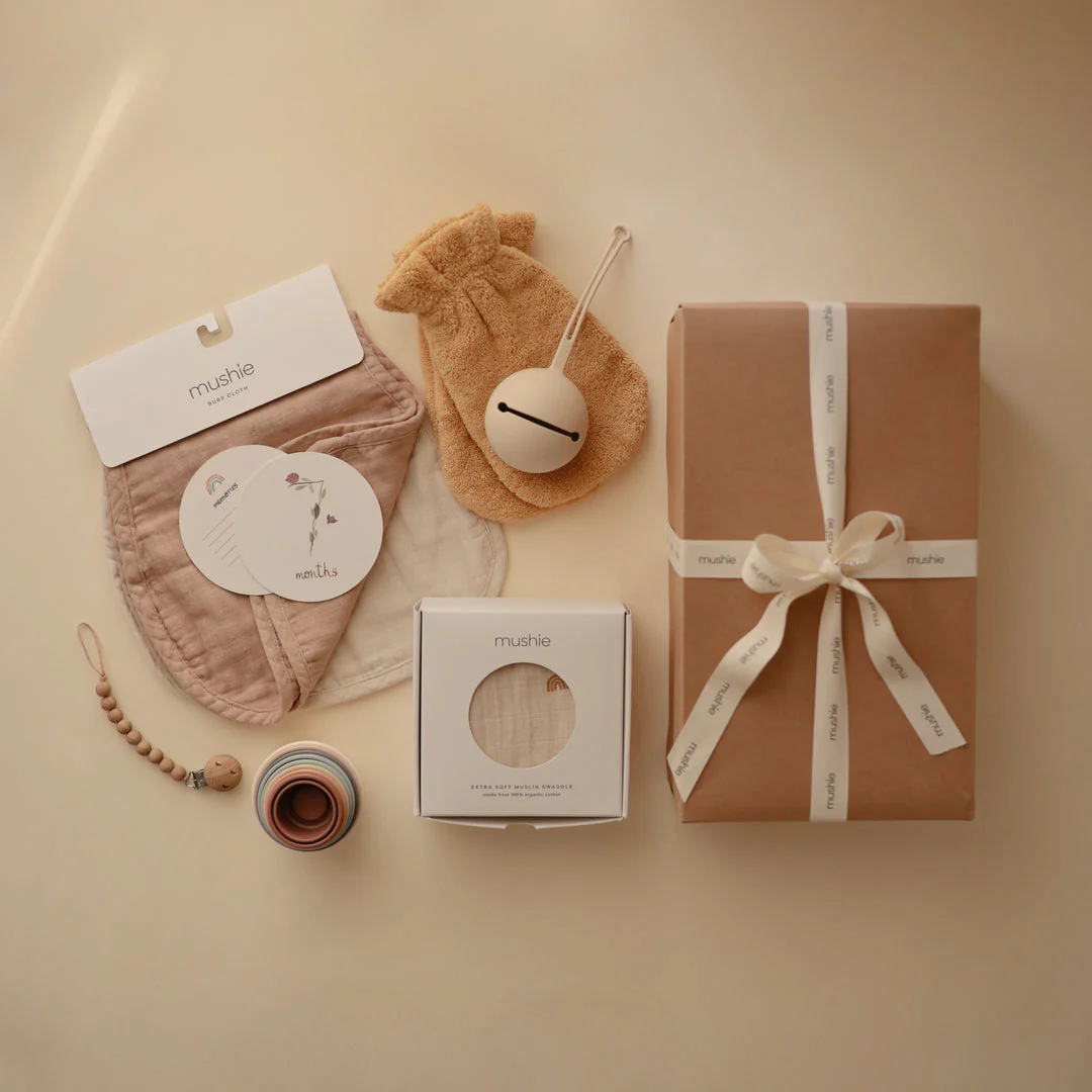 Pre-packaged in a kraft paper gift box and tied with a beautiful ribbon, our newborn gift set will be loved by families as they adjust to life with a sweet little one.