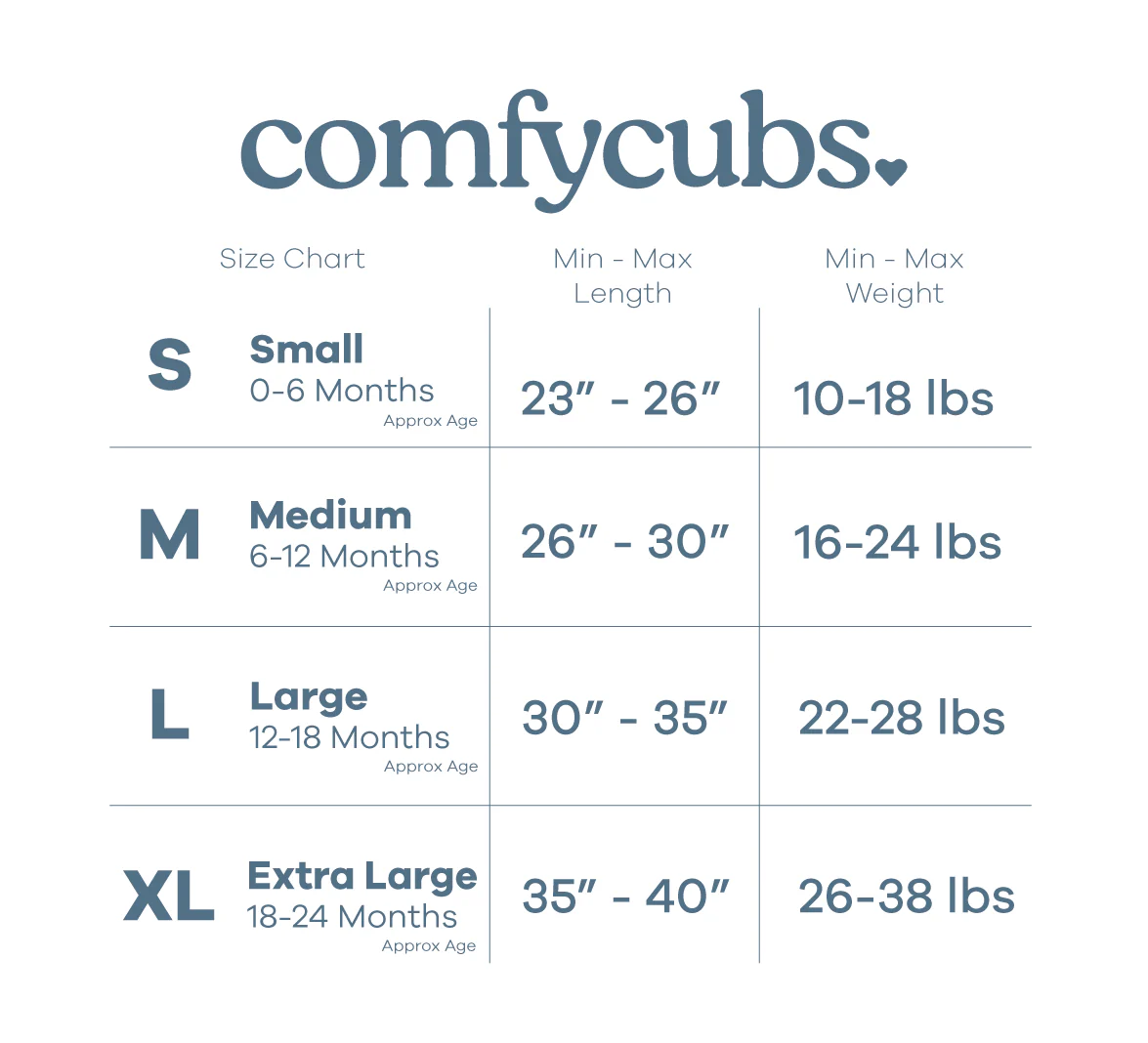 • X-Large - 26 to 38 pounds who are generally 18-24 months old and 36-40 inches long