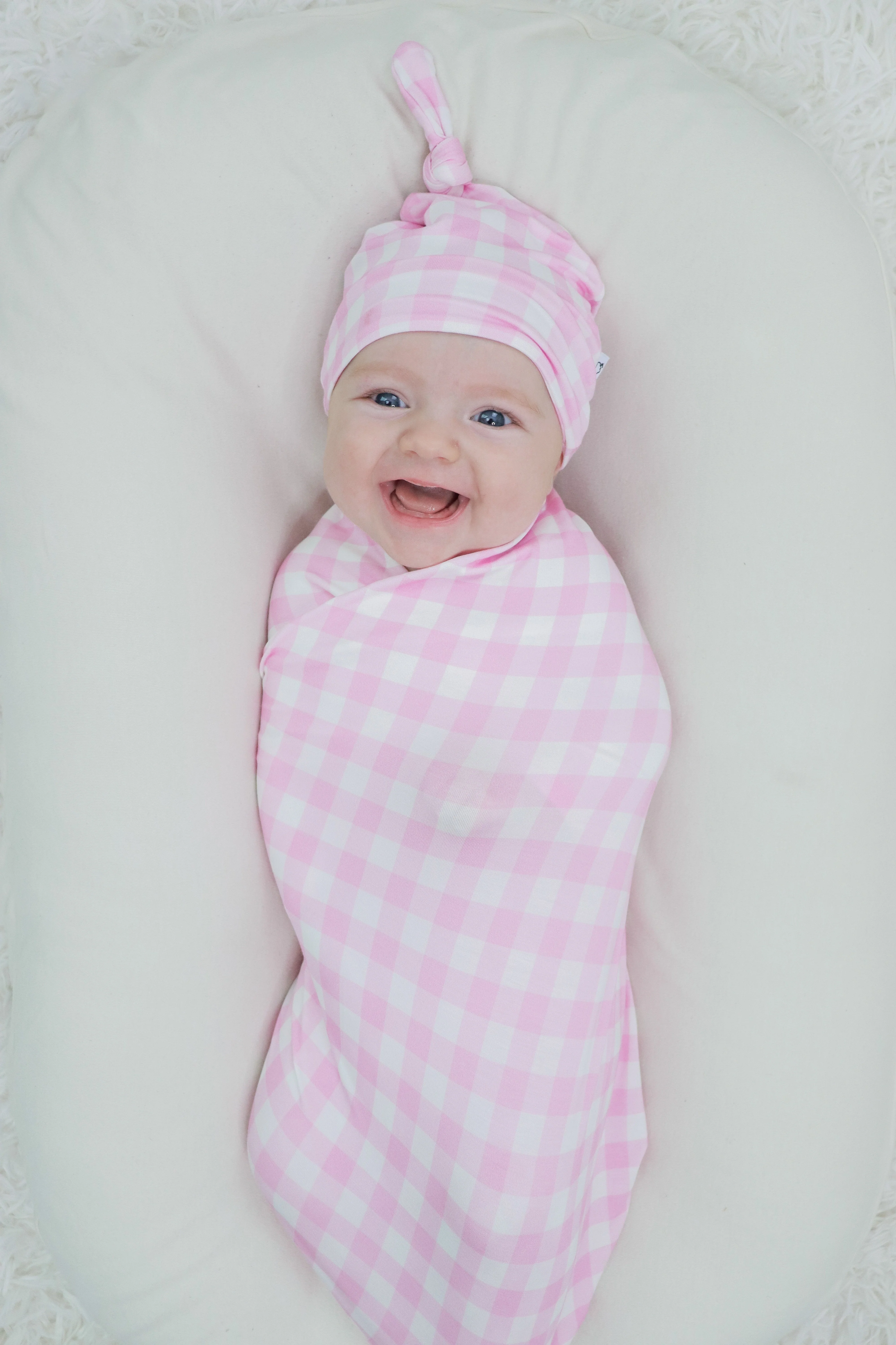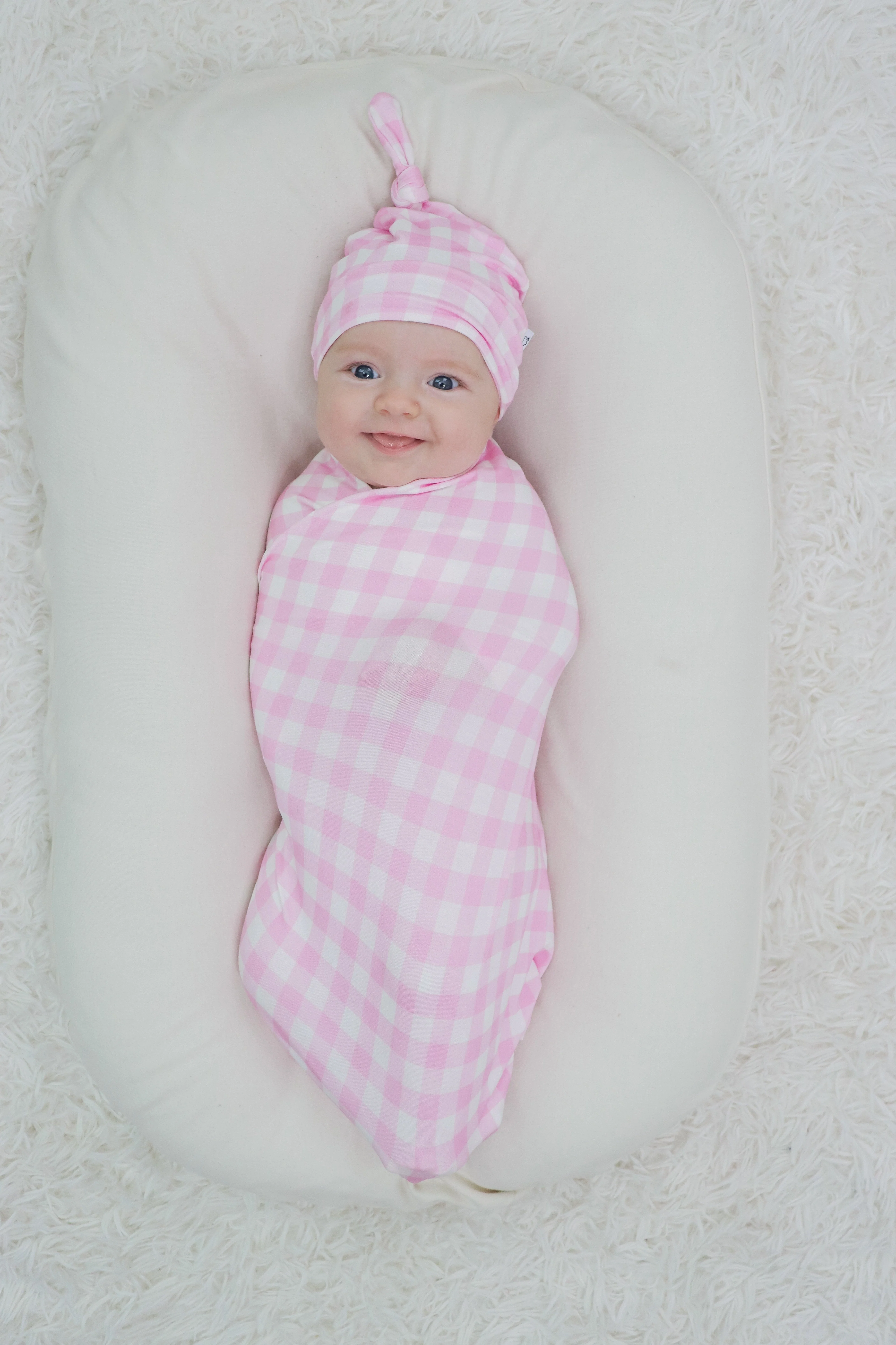 Wrap your little one in cozy comfort with our Taffy Pink Gingham Dream Swaddle & Beanie. Made from buttery soft bamboo material, this adorable newborn set features a playful taffy pink gingham print. Keep your baby snug and stylish all day long.