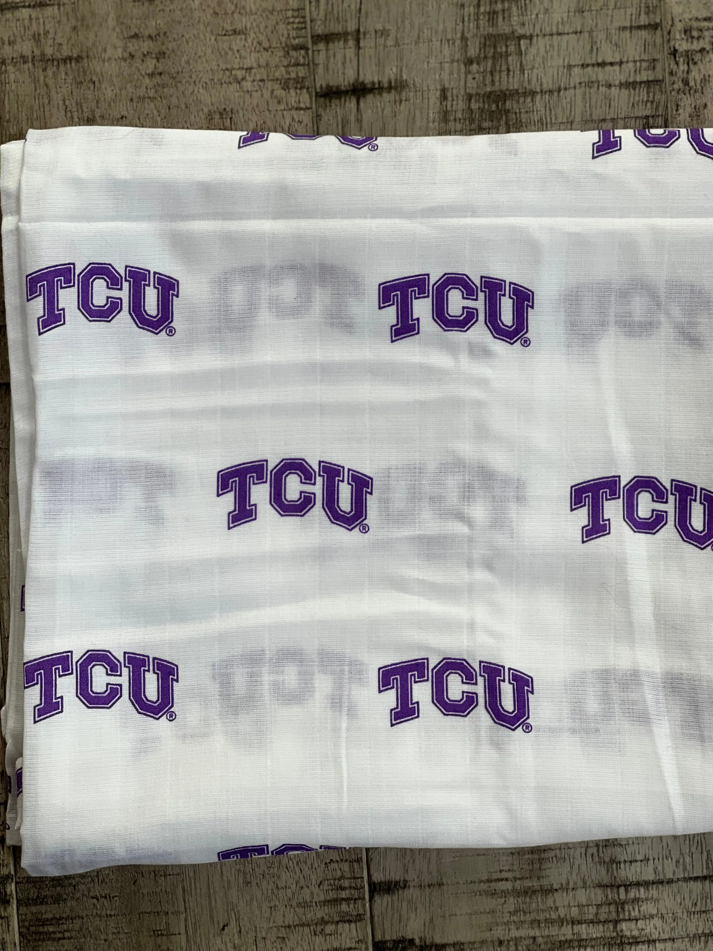 Officially licensed Texas Christian University 100% cotton muslin swaddle blanket. This blanket is generously sized (47x47in) that allows for longevity of use beyond the swaddle. Designed for your littlest TCU fan!