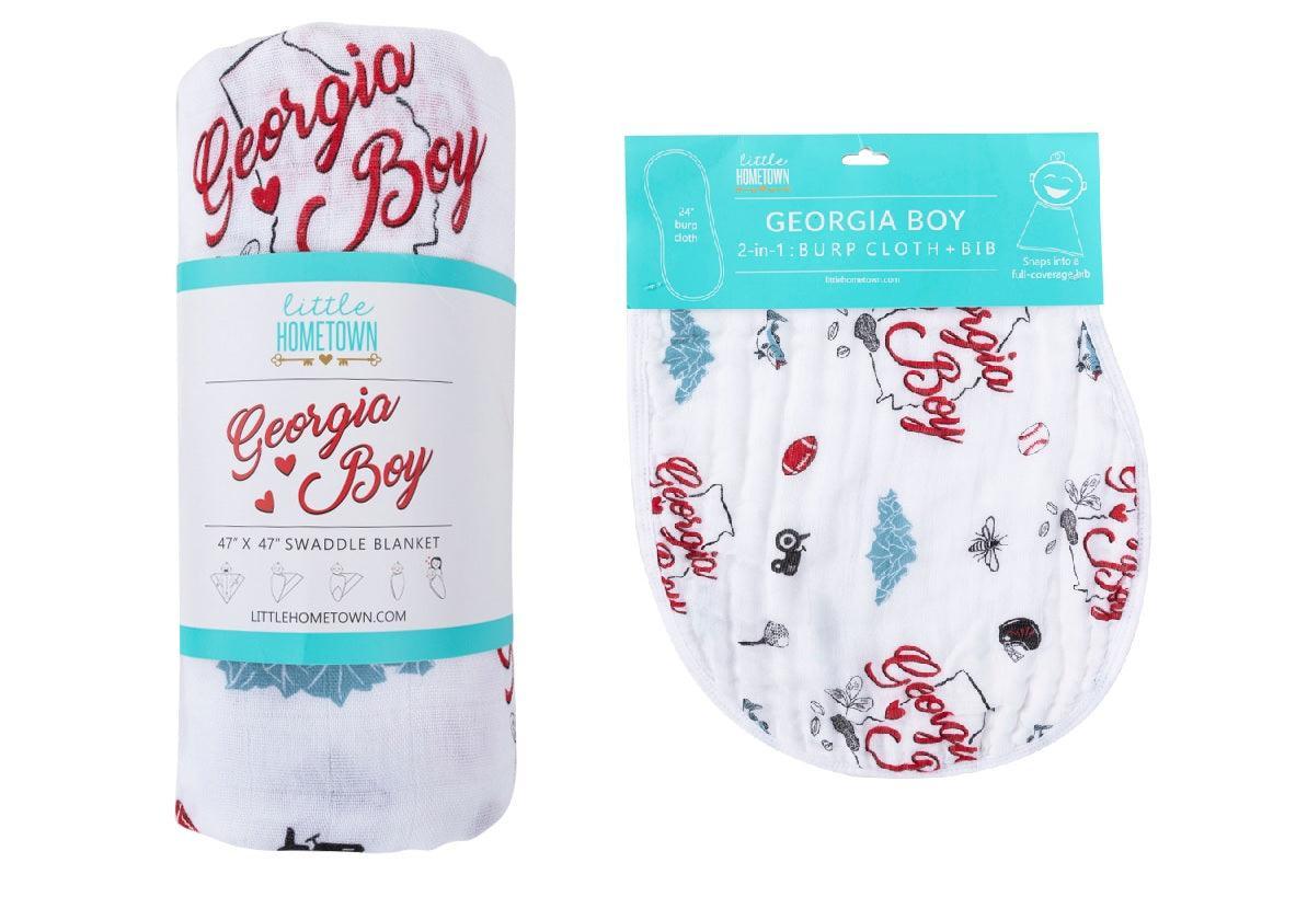 Little Hometown Gift Set: Maryland Baby Muslin Swaddle Blanket and Burp Cloth/Bib Combo