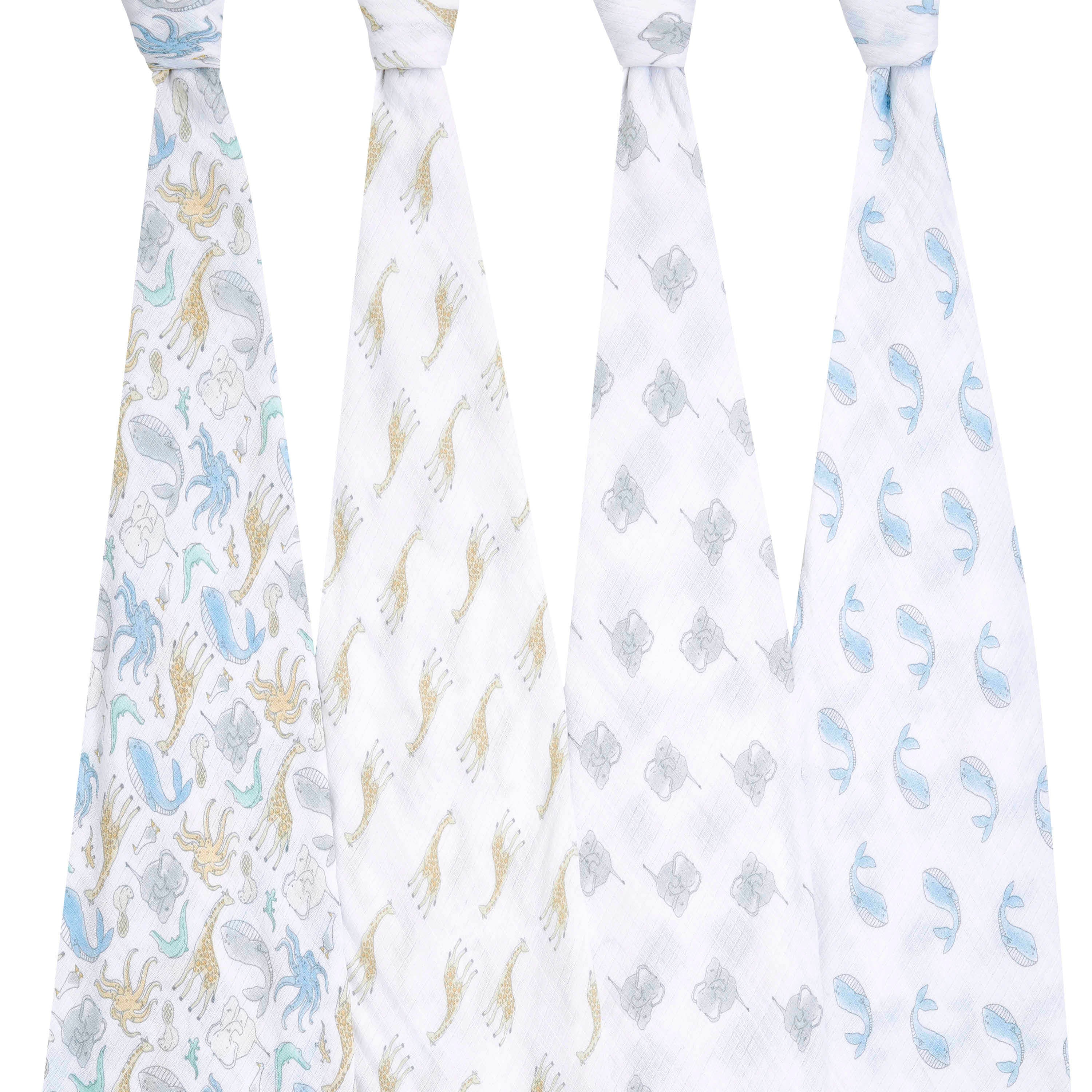 aden + anais Cotton Muslin Swaddles Natural History 4 pack Blanket