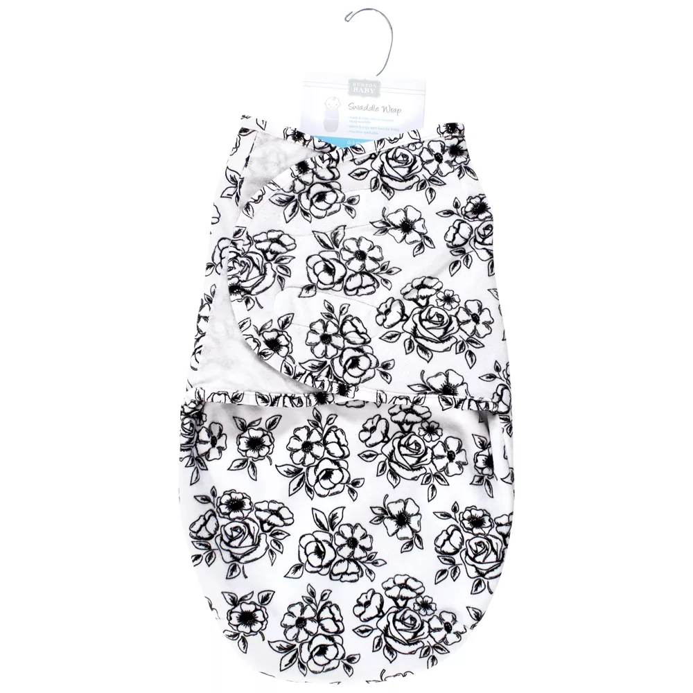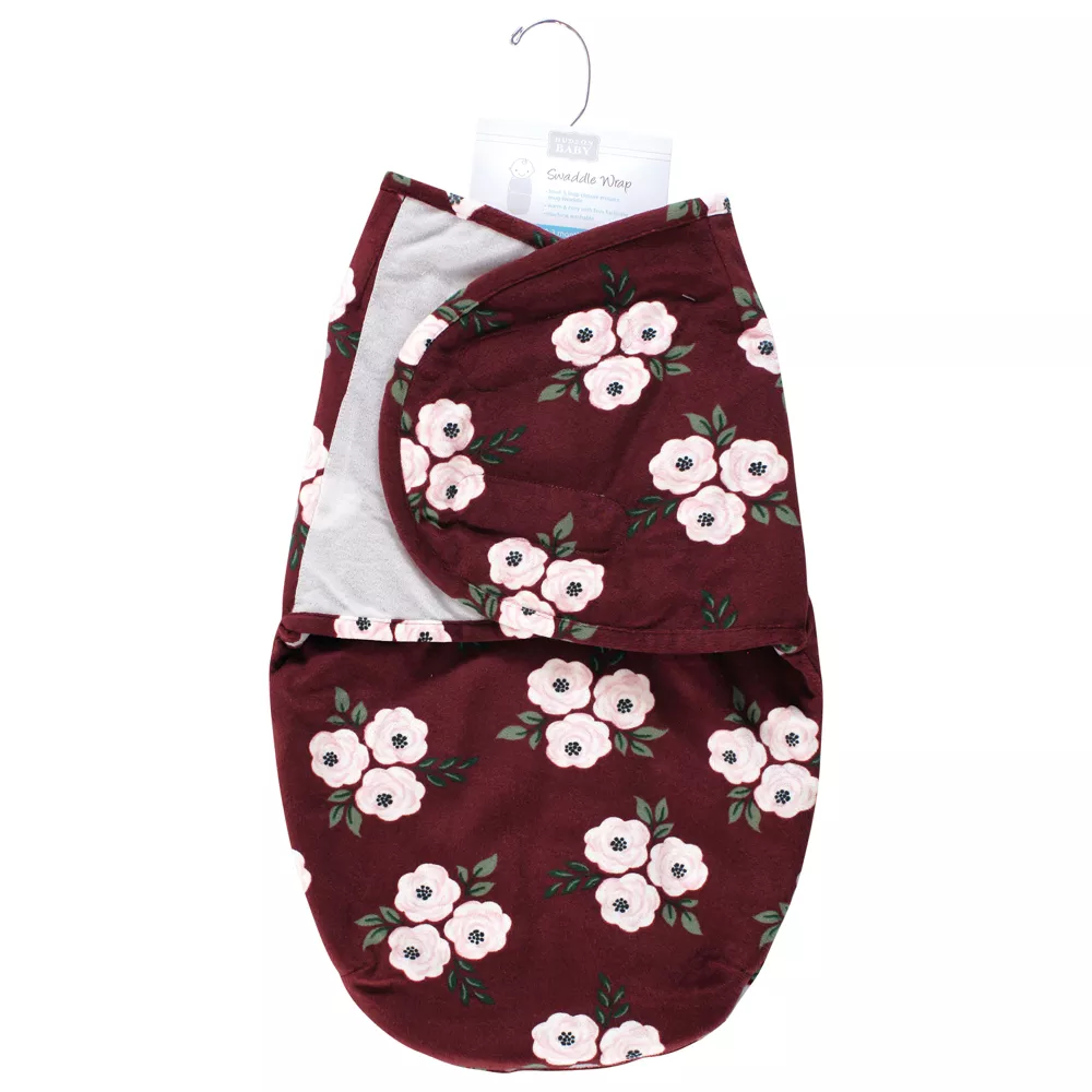 Hudson Baby Plush Faux Fur Swaddle Wrap, Burgundy Floral, 0-3 Months