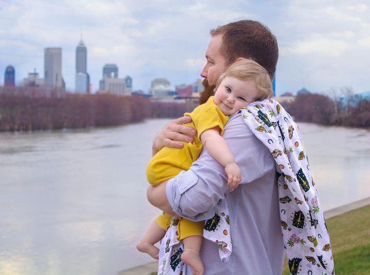 Little Hometown Gift Set: Indiana Baby Muslin Swaddle Blanket and Burp Cloth/Bib Combo