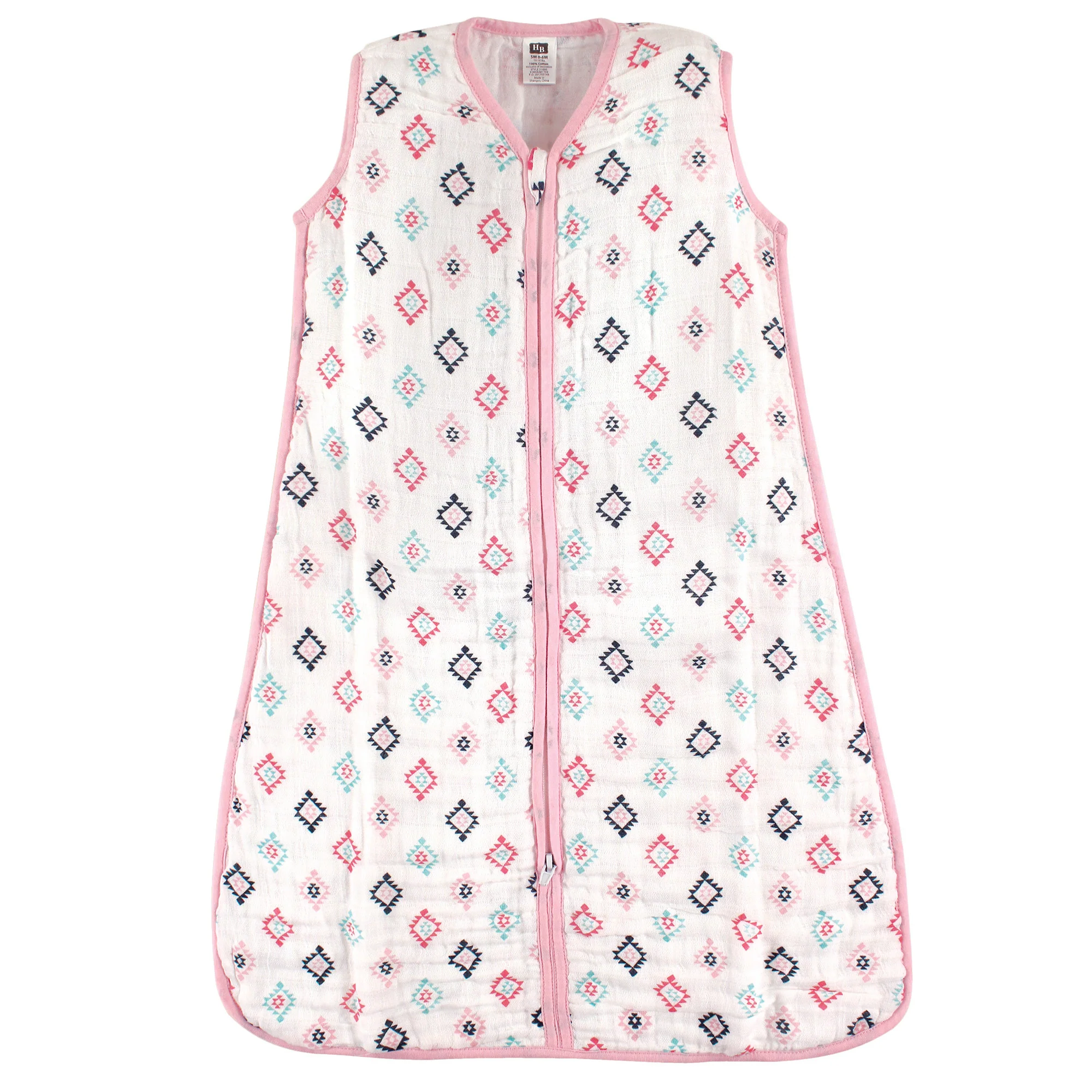 Hudson Baby Infant Girl Muslin Cotton Sleeveless Wearable Blanket, Pink Aztec