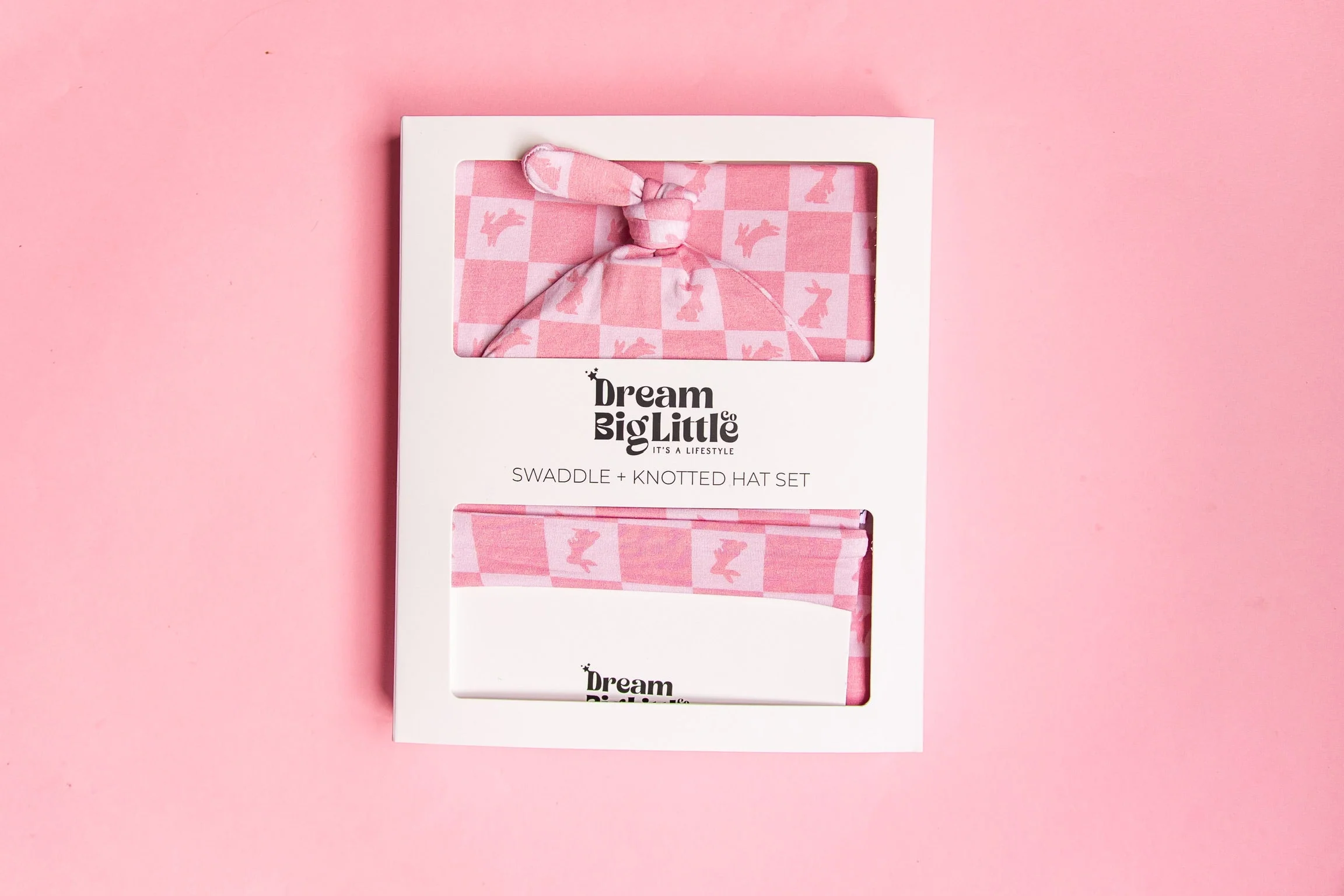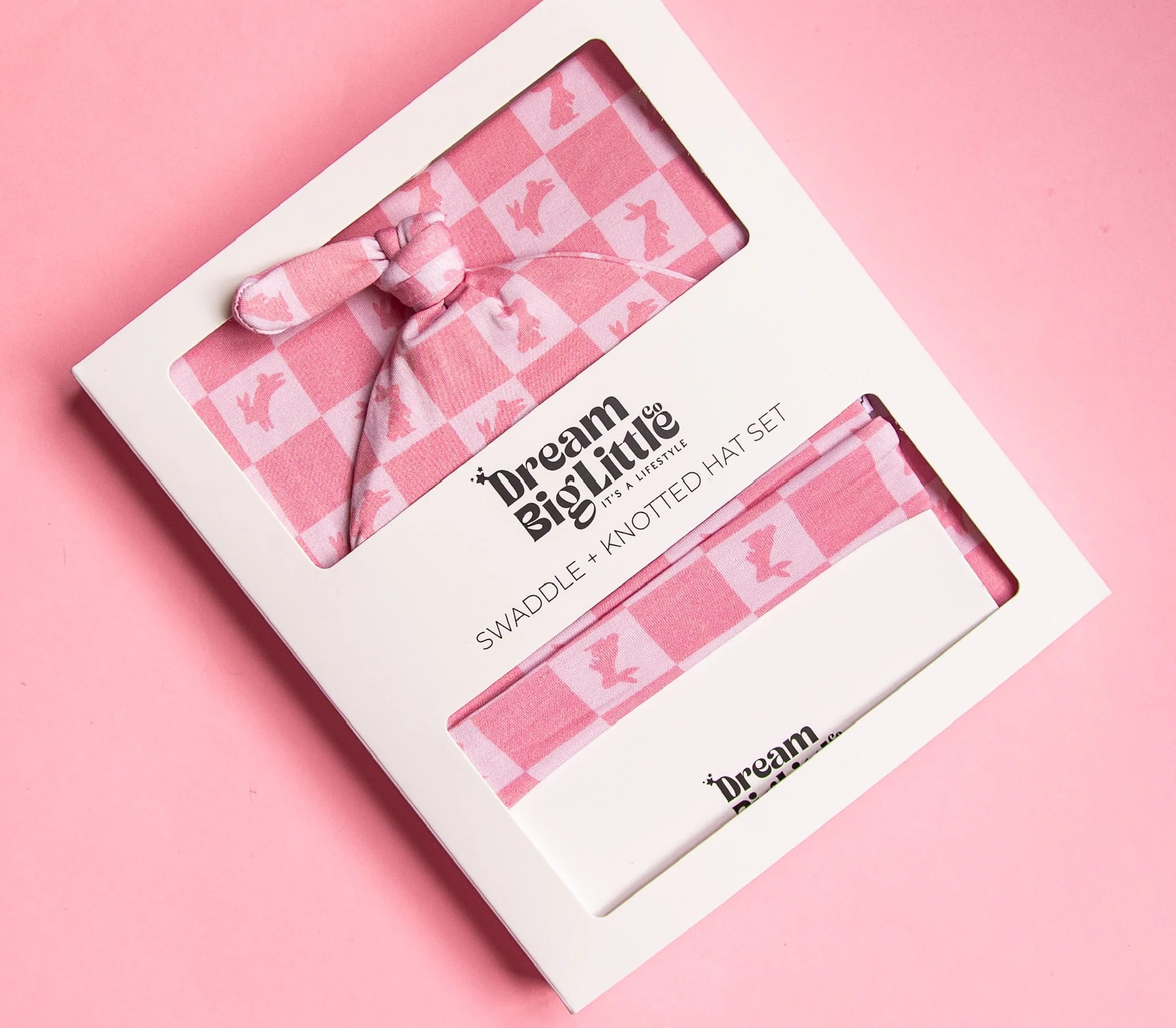 Dream Big Little Co HOPPITY BLUSH CHECKERS DREAM SWADDLE & BEANIE