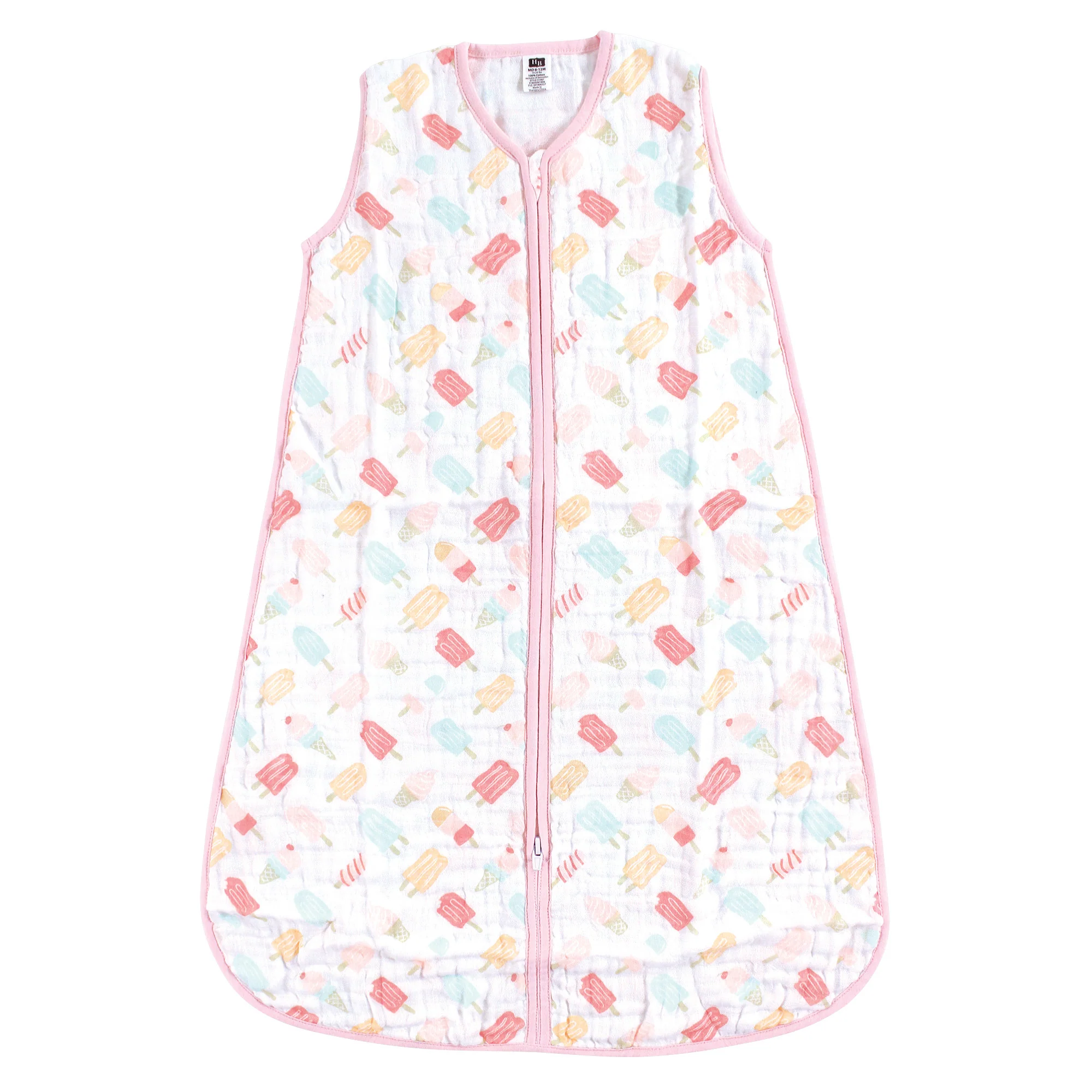 Hudson Baby Infant Girl Muslin Cotton Sleeveless Wearable Blanket, Ice Cream