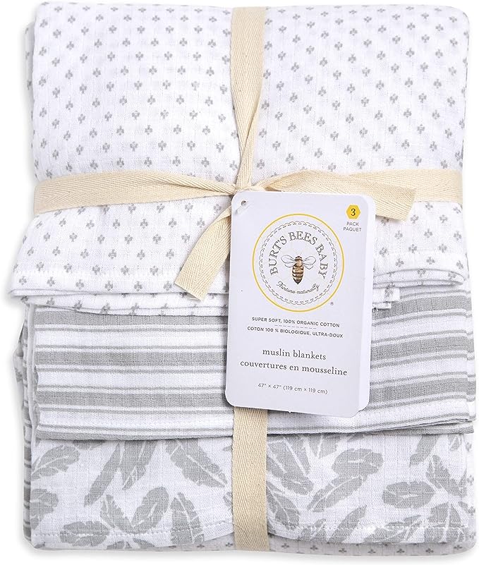 Burt's Bees Baby - Swaddles, Muslin Cotton Baby Blankets, 3-Pack, Dottie Bee