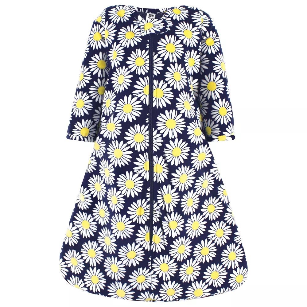 Hudson Baby Long Sleeve Plush Faux Fur Wearable Blanket, Navy Daisy
