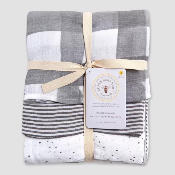 Burt's Bees Baby Woven Organic Cotton Muslin Blankets - 3 pack, Starry Eye