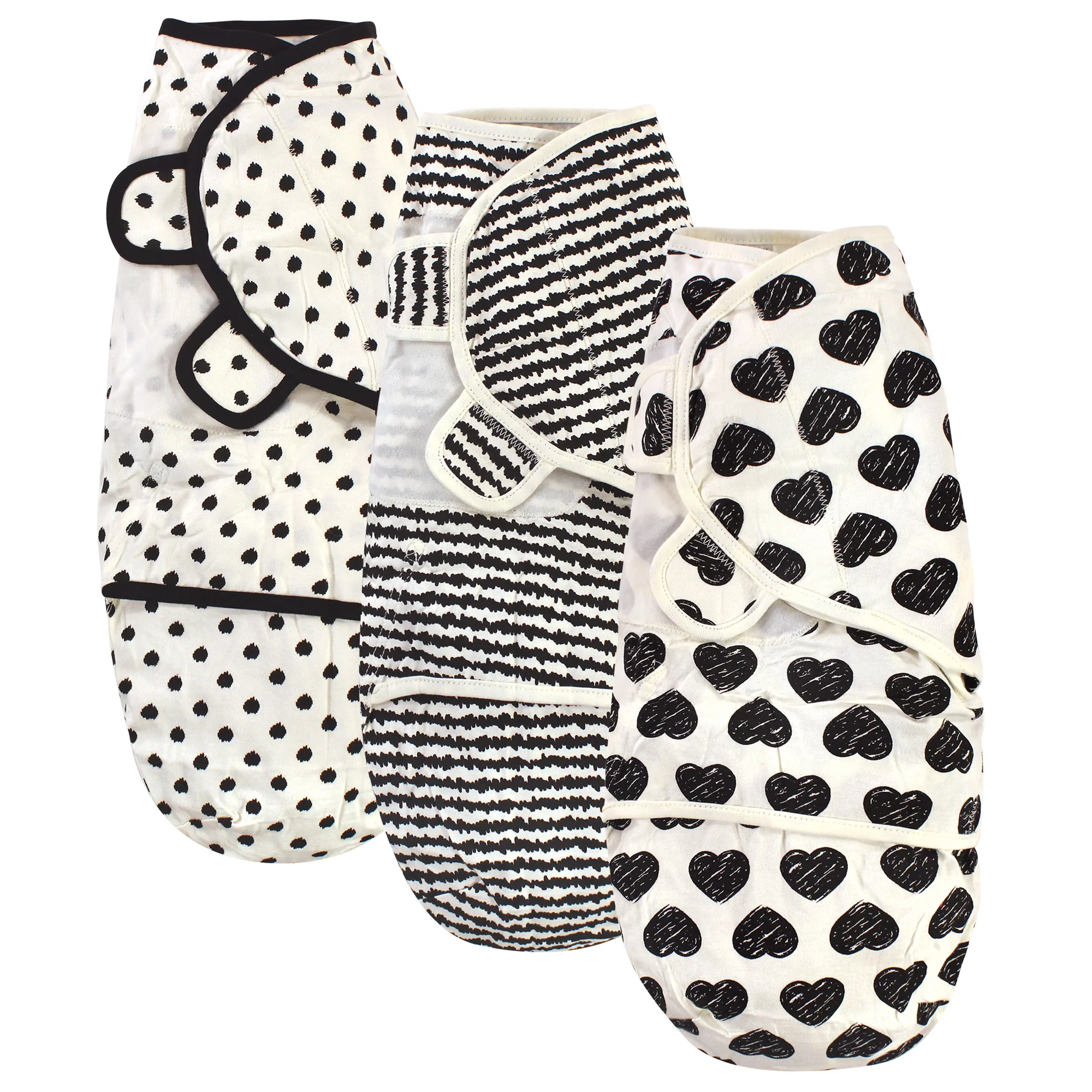 Touched by Nature Baby Organic Cotton Swaddle Wraps, Black Heart 3-Pack, 0-3 Months