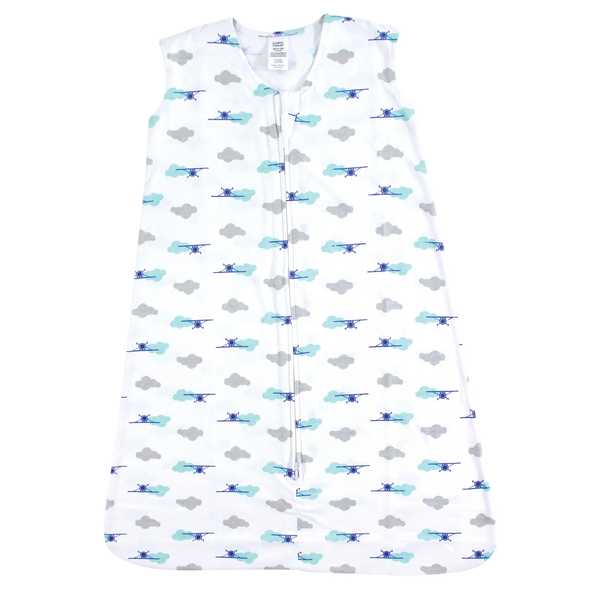 Luvable Friends Baby Boy Sleeveless Jersey Cotton Wearable Blanket, Airplane Cloud