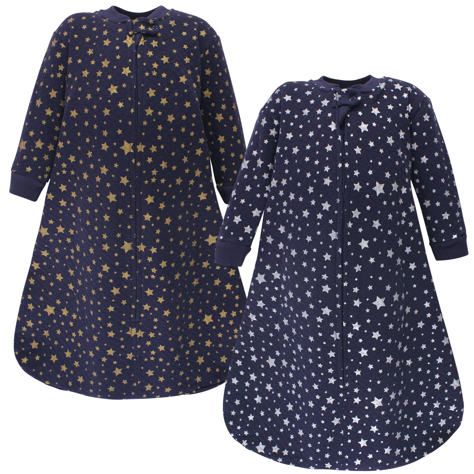 Hudson Baby Premium Quilted Long Sleeve 2-Pack Wearable Blanket, Metallic Stars