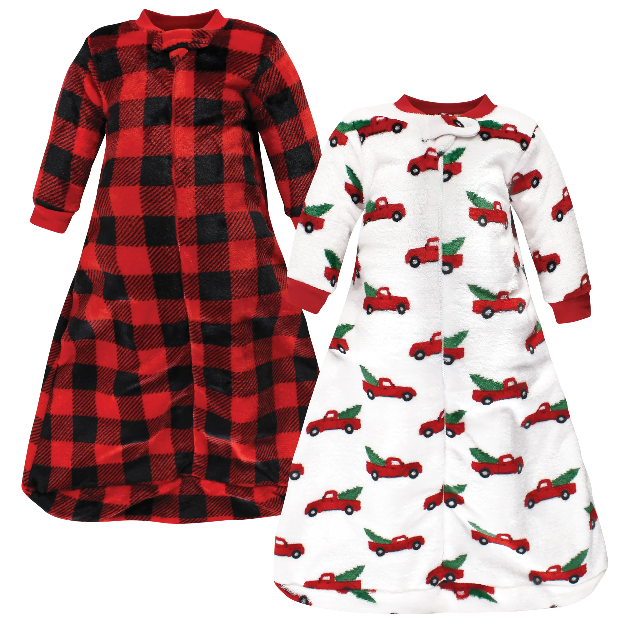 Hudson Baby Plush Long-Sleeve Wearable Blanket, Christmas Tree Truck, 2-Pack