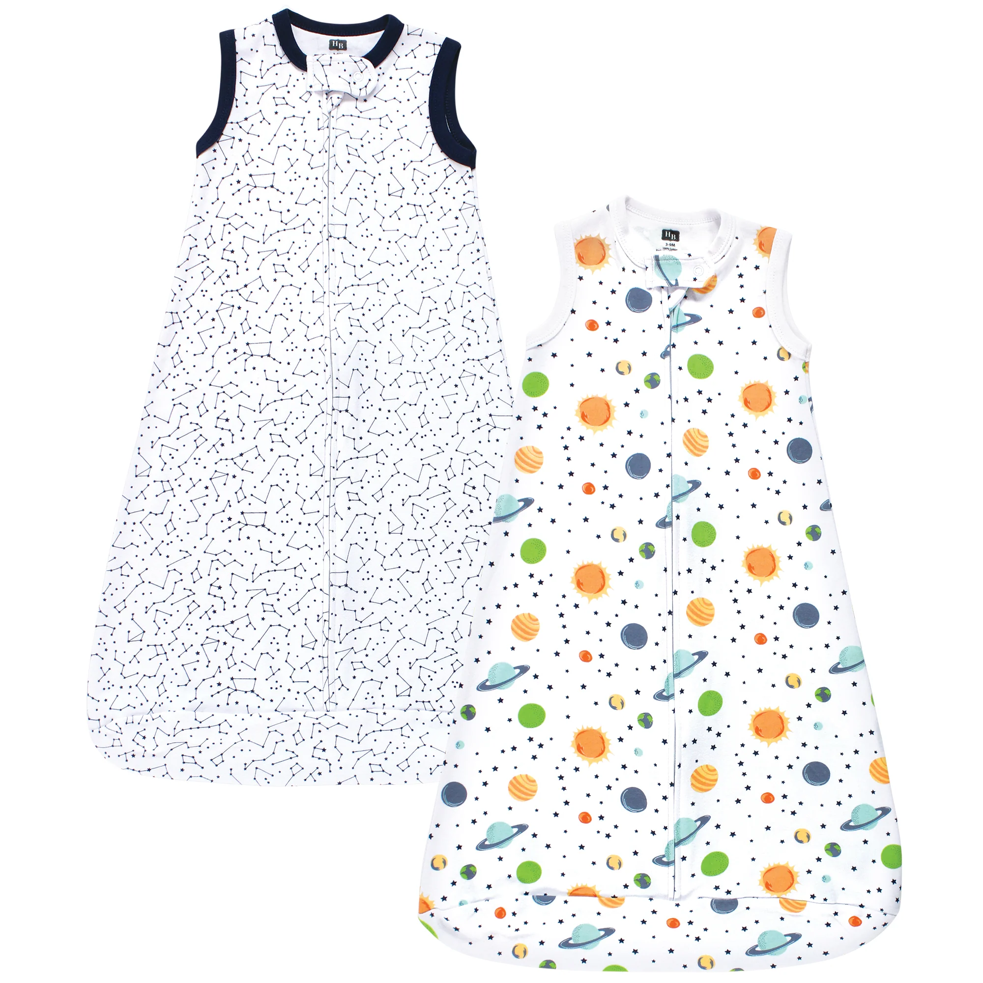 Hudson Baby Infant Boy Interlock Cotton Sleeveless Sleeping Bag, Space, 2-Pack