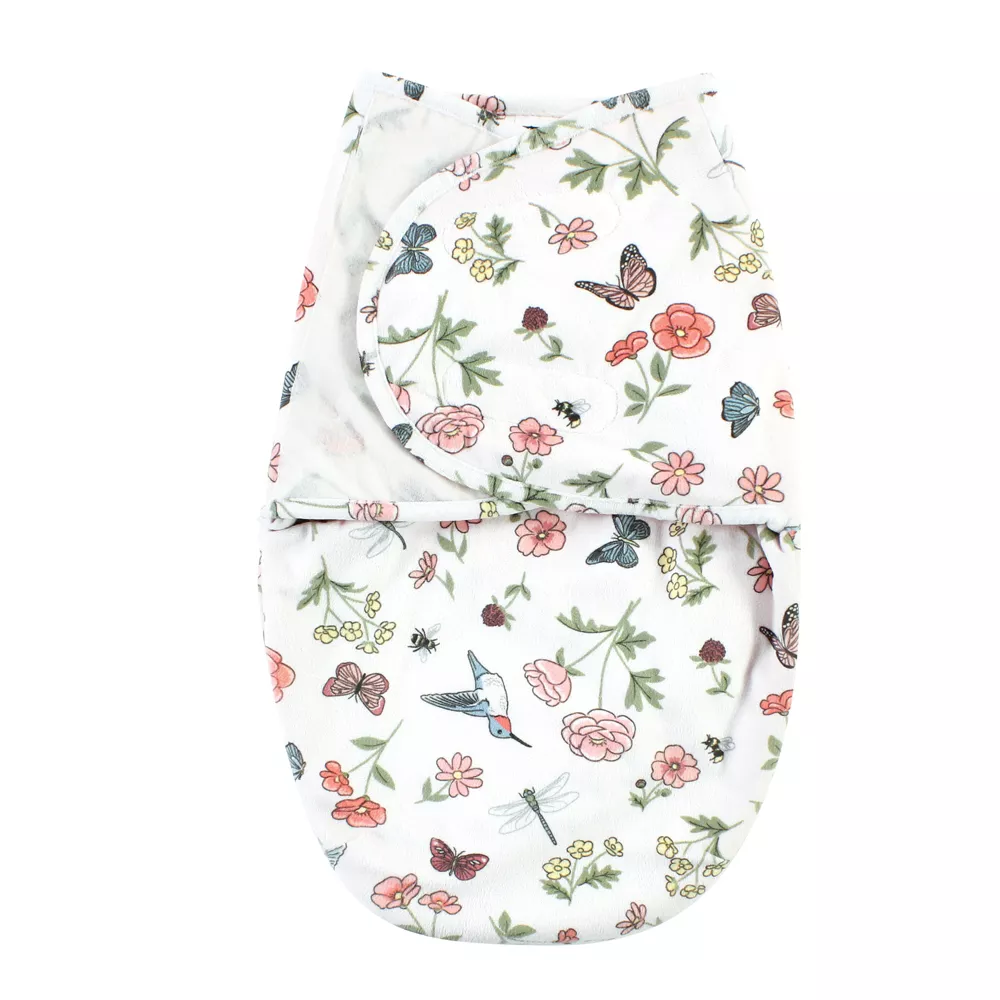 Hudson Baby Plush Faux Fur Swaddle Wrap, Hummingbird Garden, 0-3 Months