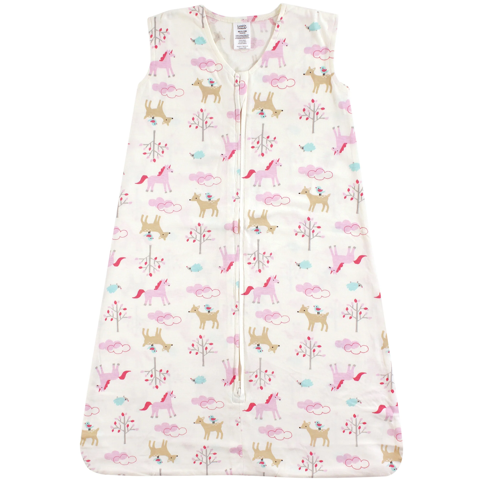 Luvable Friends Baby Girl Sleeveless Jersey Cotton Wearable Blanket, Magical Forest