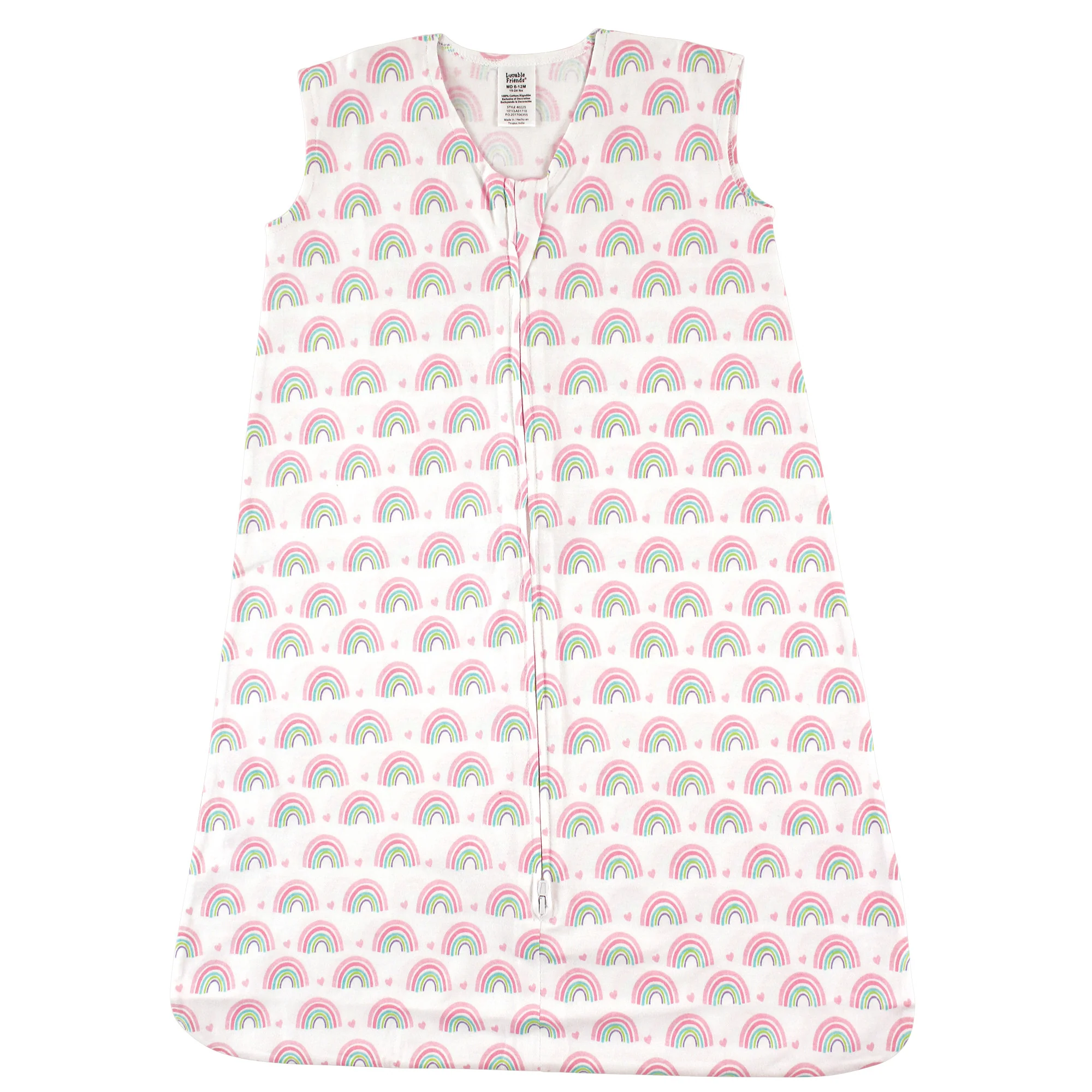 Luvable Friends Baby Girl Sleeveless Jersey Cotton Wearable Blanket, Rainbows