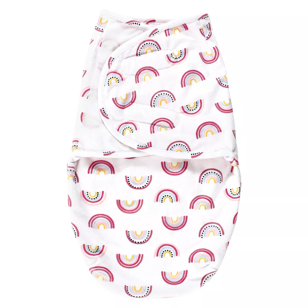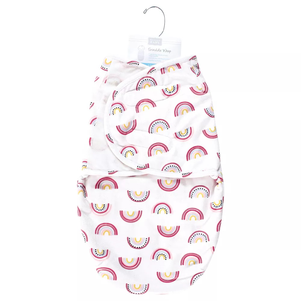 Hudson Baby Plush Faux Fur Swaddle Wrap, Modern Rainbow, 0-3 Months