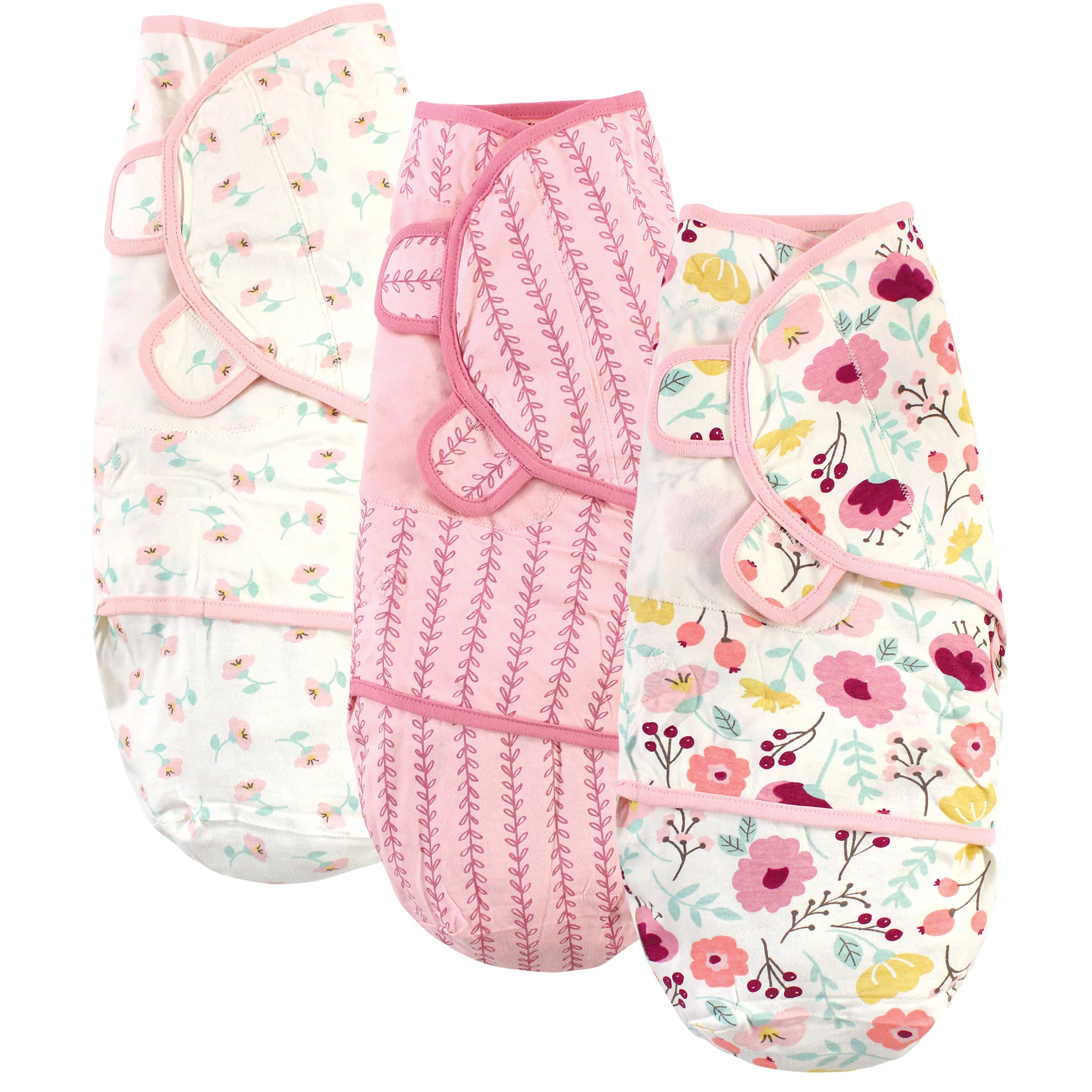 Touched by Nature Baby Girl Organic Cotton Swaddle Wraps, Botanical, 0-3 Months
