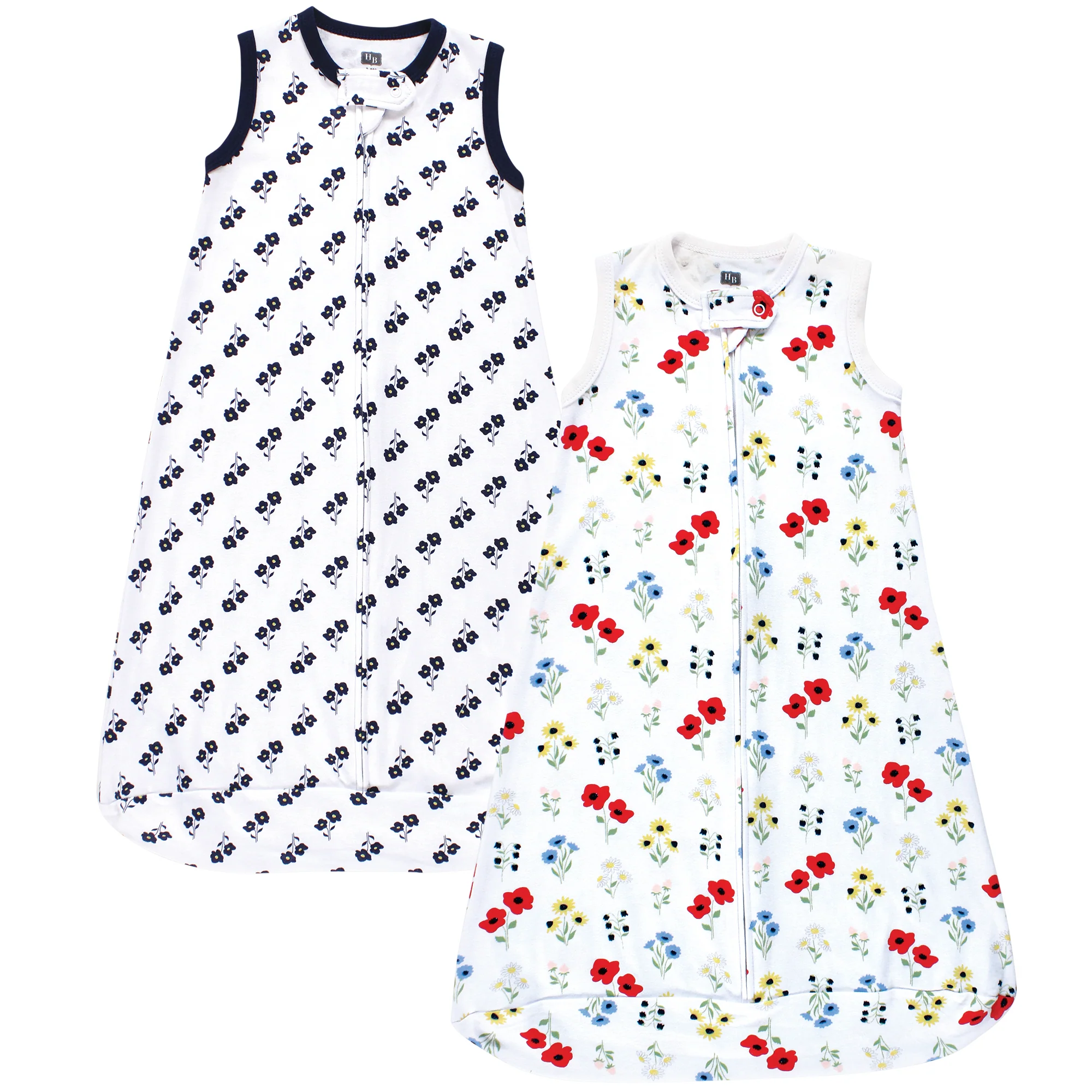 Hudson Baby Infant Girl Interlock Cotton Sleeveless Sleeping Bag, Wildflower, 2-Pack
