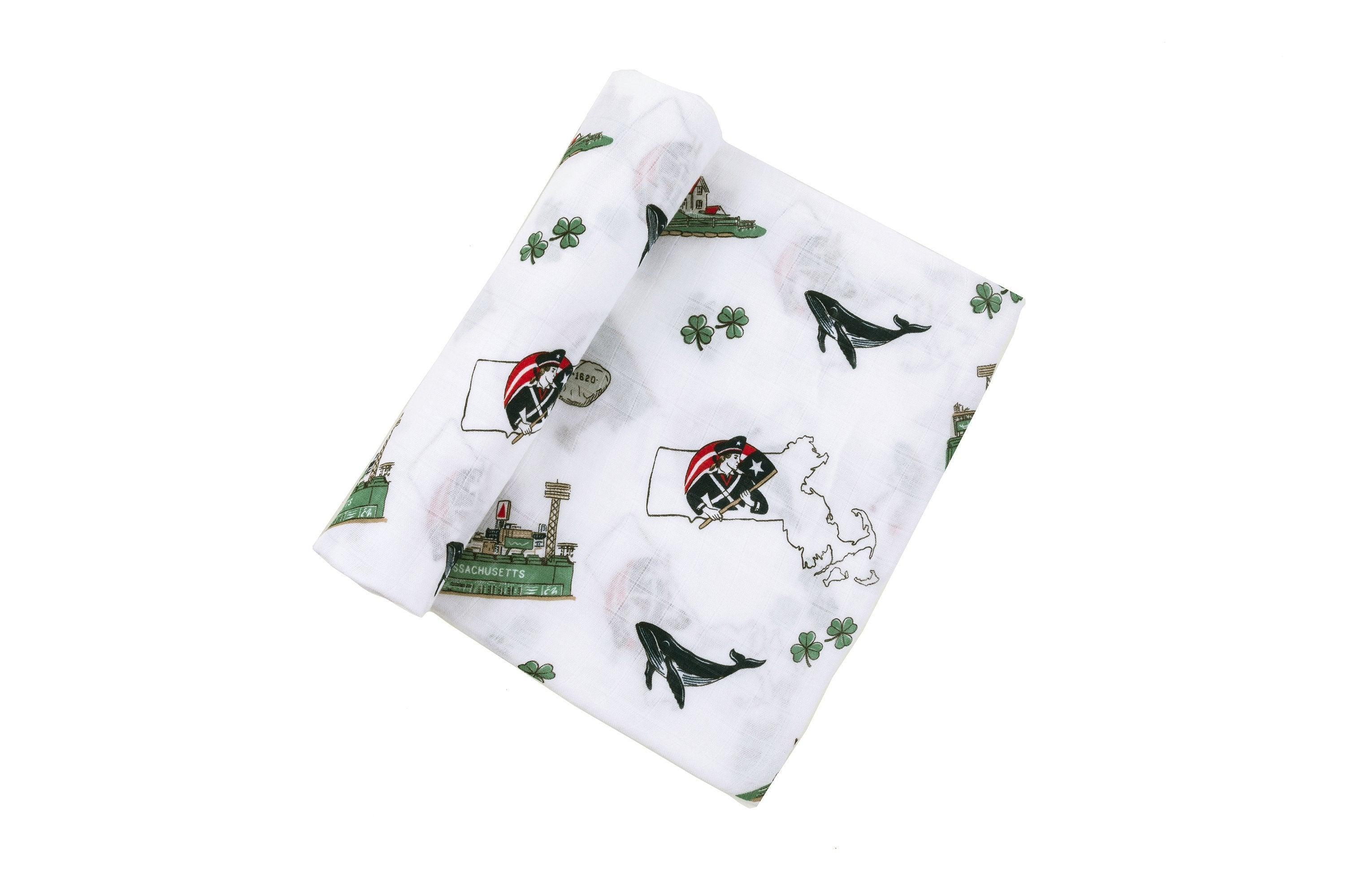 Little Hometown Gift Set: Massachusetts Baby Muslin Swaddle Blanket and Burp Cloth/Bib Combo