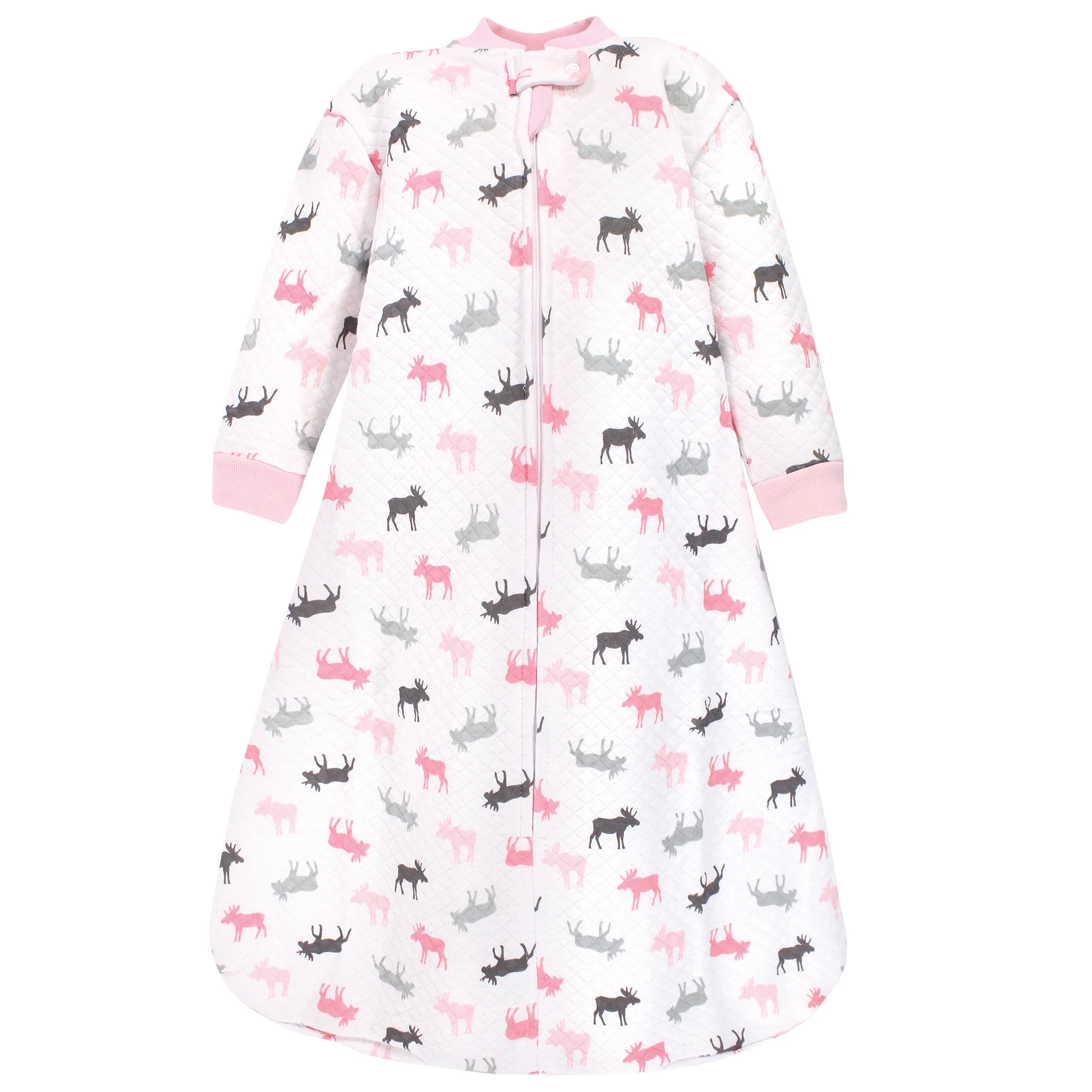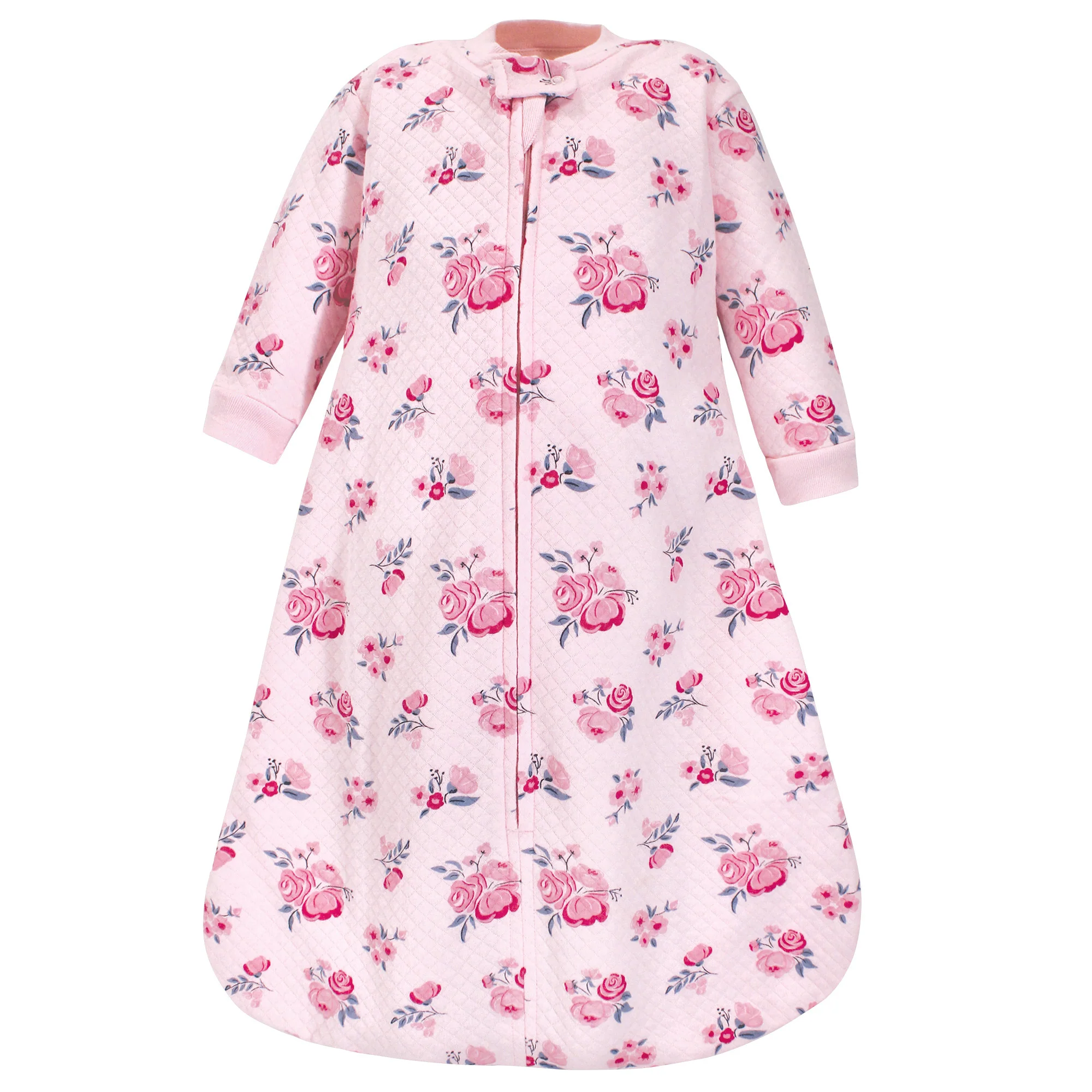 Hudson Baby Infant Girl Premium Quilted Long Sleeve Wearable Blanket, Pink Navy Floral