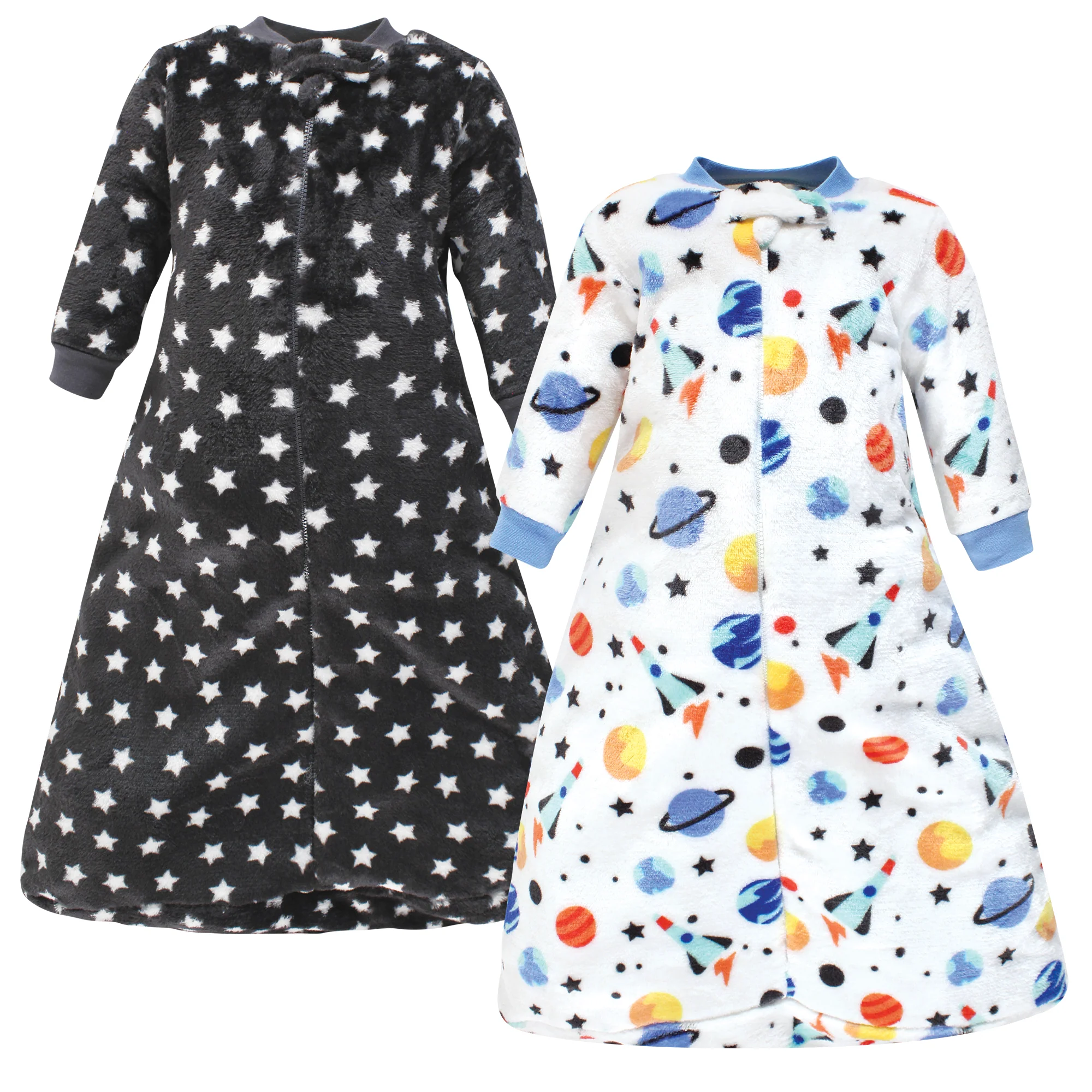 Hudson Baby Infant Plush Long-Sleeve Wearable Blanket, Space Adventure, 2-Pack