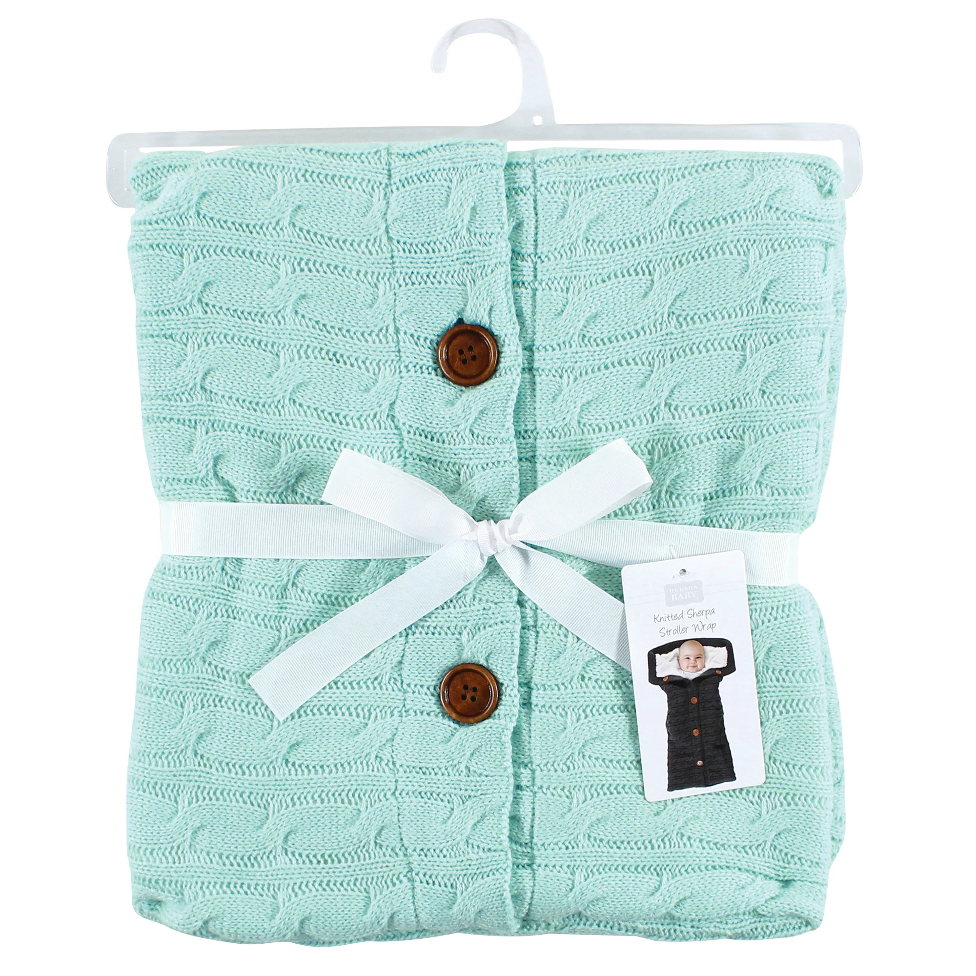 Hudson Baby Faux Shearling Knitted Baby Lounge Stroller Wrap Sack, Mint