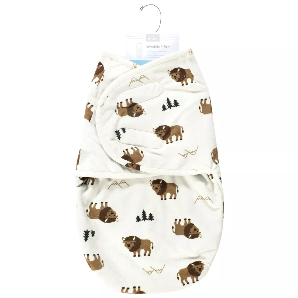 Hudson Baby Plush Faux Fur Swaddle Wrap, Wild Buffalo, 0-3 Months