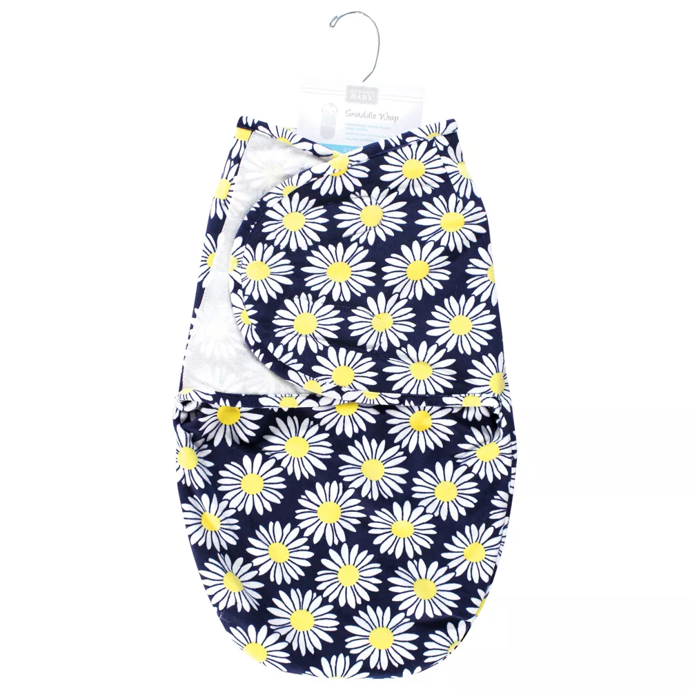 Hudson Baby Plush Faux Fur Swaddle Wrap, Navy Daisy, 0-3 Months