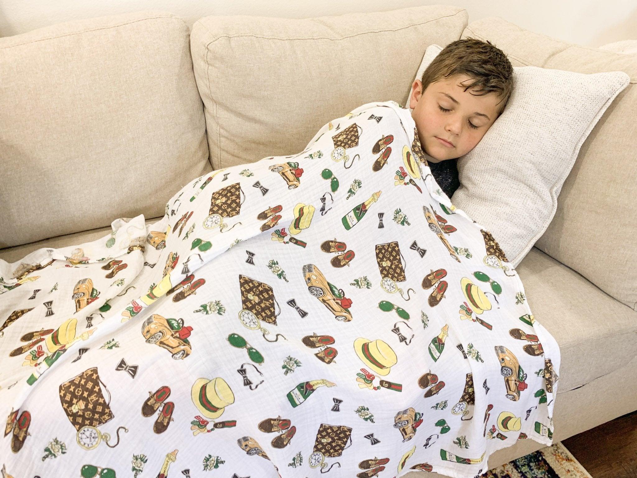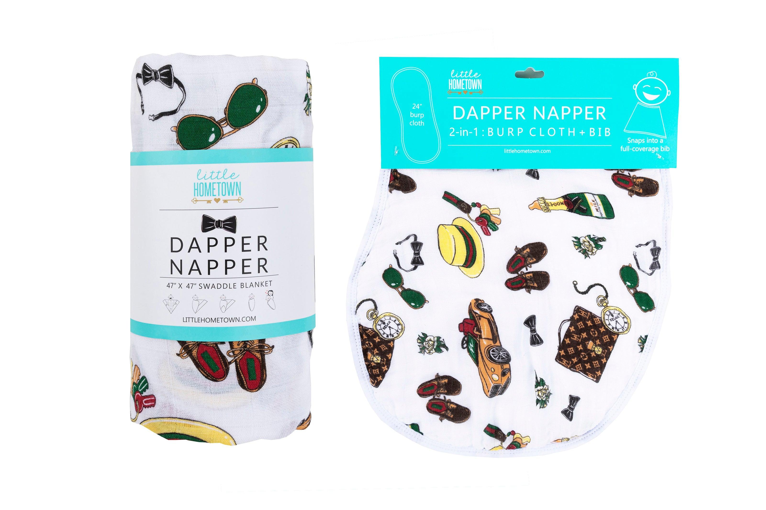 Little Hometown Gift Set: Dapper Napper Baby Muslin Swaddle Blanket and Burp Cloth/Bib Combo