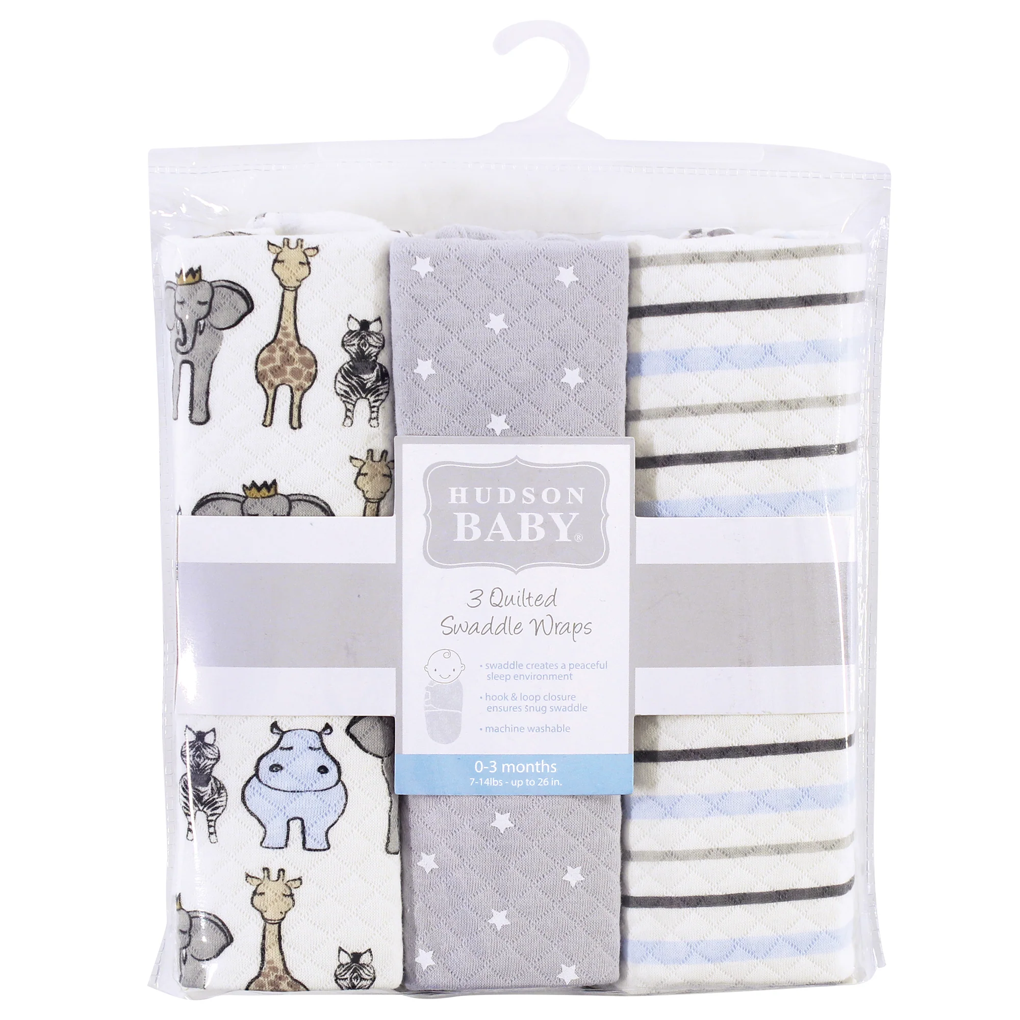 Hudson Baby Infant Boy Quilted Cotton Swaddle Wrap 3-Pack, Royal Safari, 0-3 Months