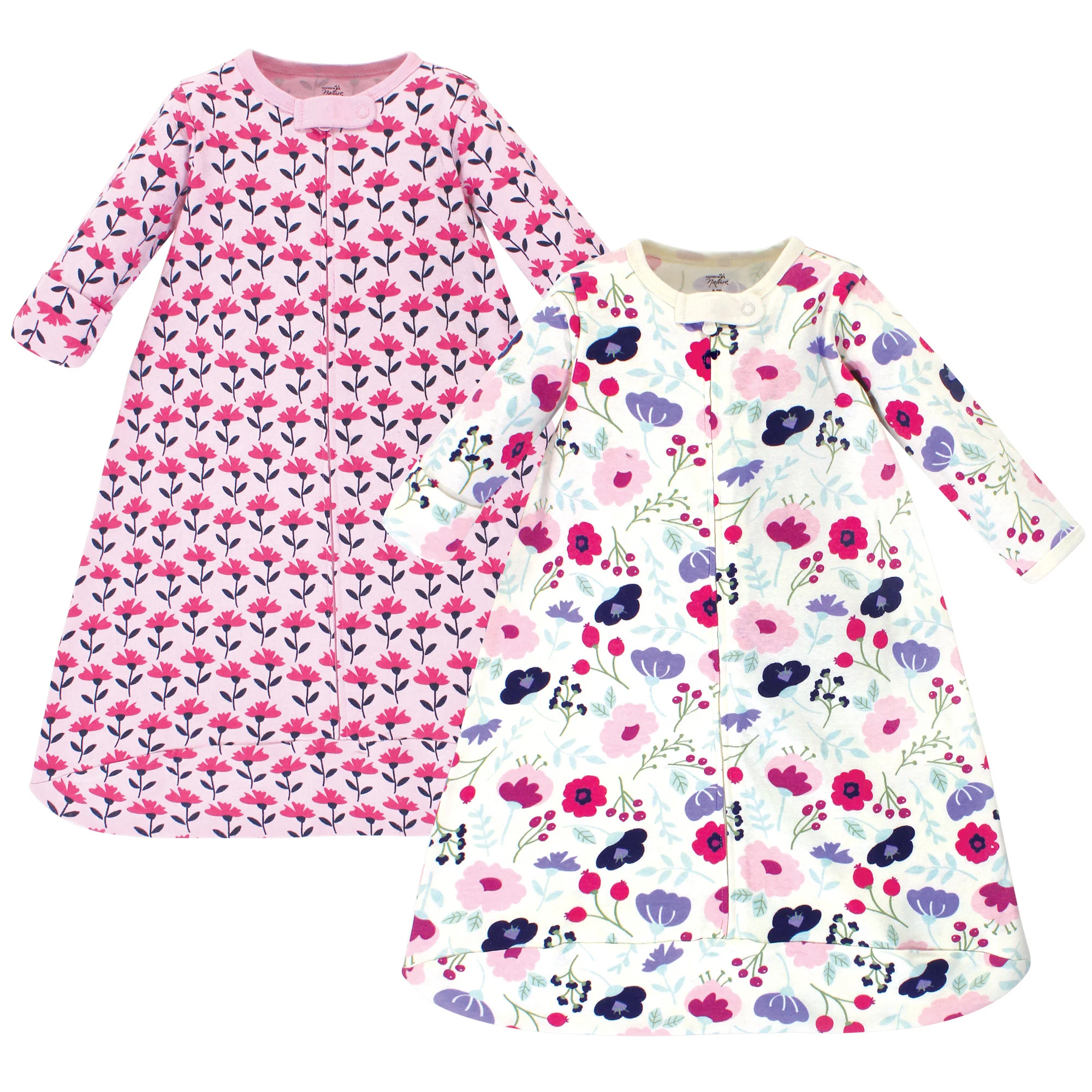 Touched by Nature Baby Girl Organic Cotton Long-Sleeve Wearable Blanket, Pink Botanical