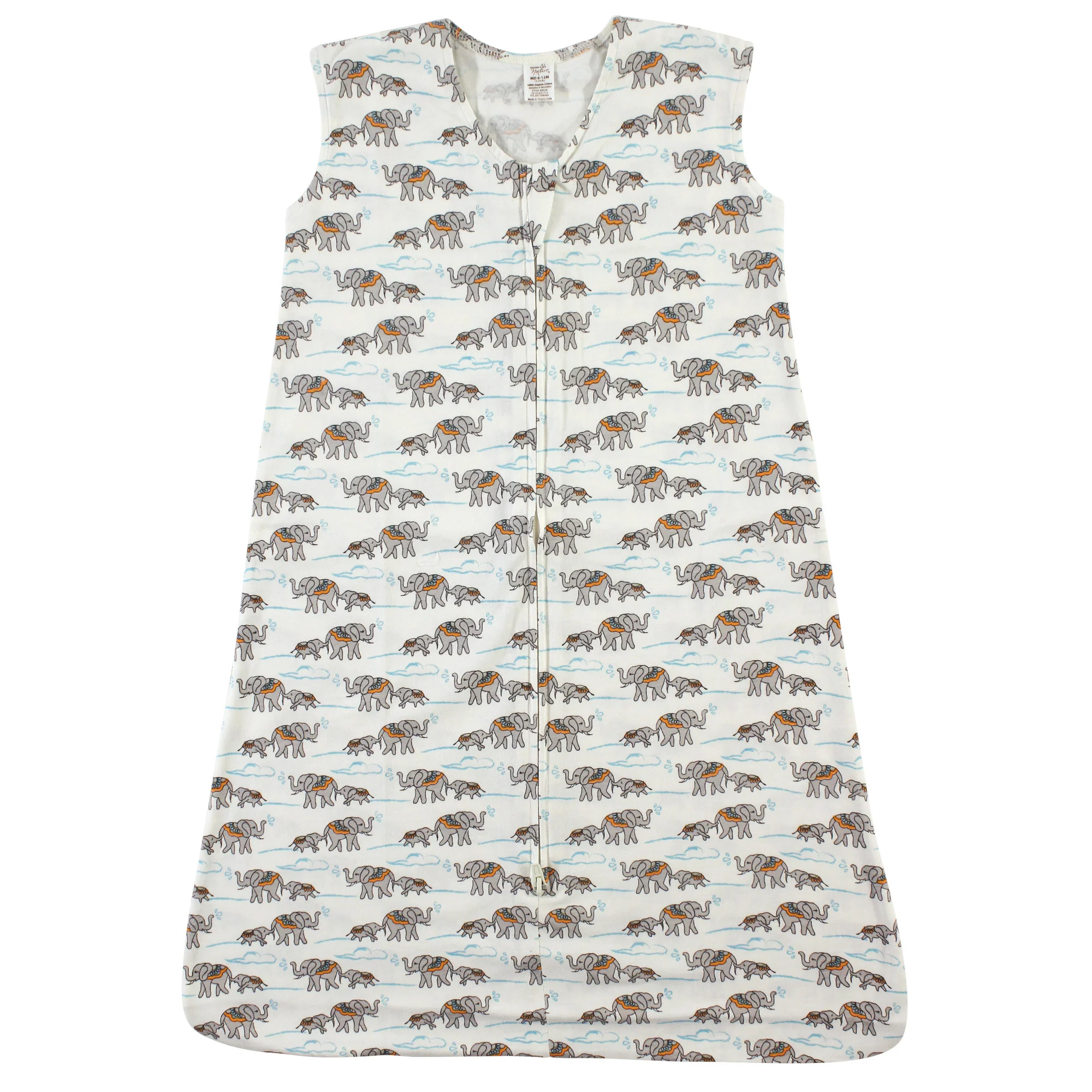 Touched by Nature Baby Boy Organic Cotton Sleeveless Wearable Sleeping Bag, Sack, Blanket, Elephants