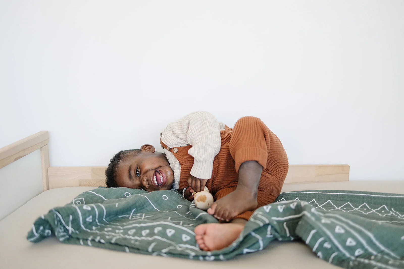 Wrap your little one in the cozy comfort of the Alpine Muslin Quilt. Crafted from the same fabric as muslin swaddles, this quilt is four layers thick, providing warmth and softness. Ideal for older babies or toddlers, it becomes even softer with each wash, ensuring a gentle touch against your child's skin. The durable and breathable muslin material makes it a practical choice for everyday use. Its gender-neutral design adds a touch of elegance to any nursery or home decor. Embrace the versatility and beauty of the Alpine Muslin Quilt for your little one.