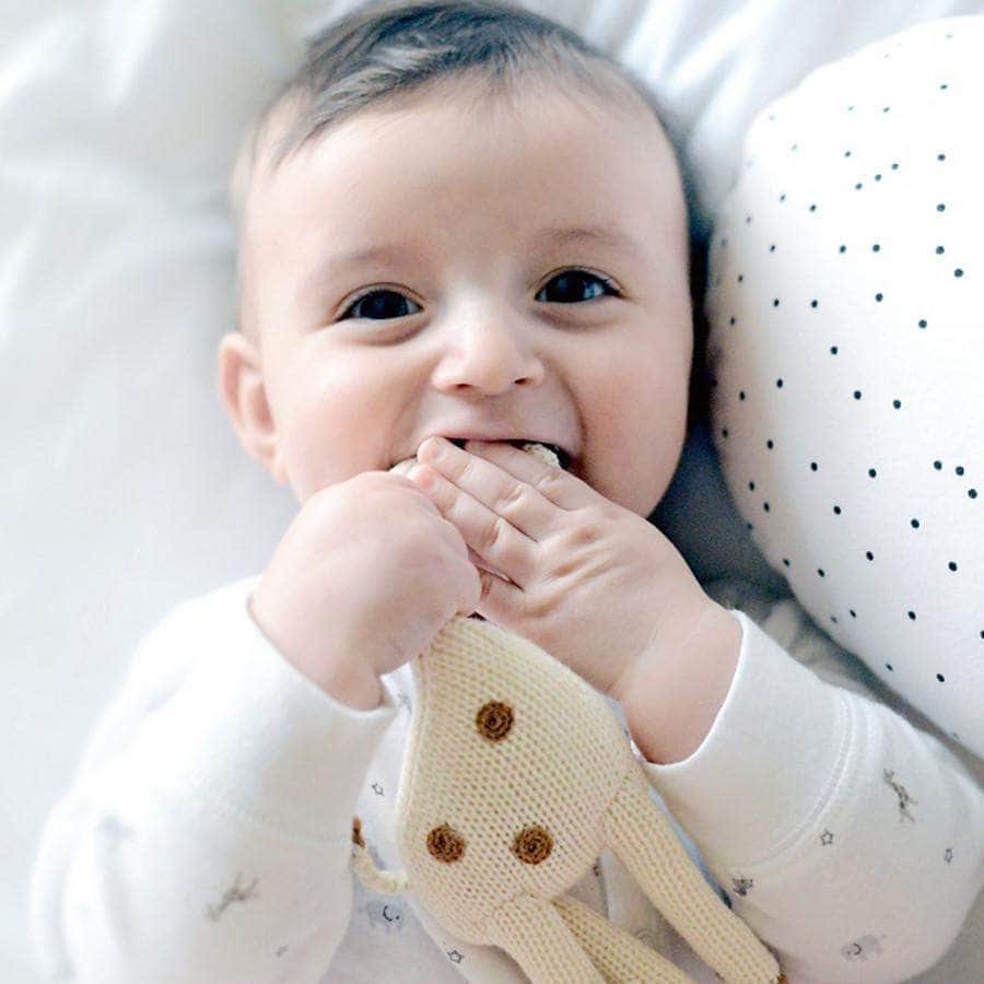 The Animal Love Organic Rattle Gift Set includes three baby toys from Estella's award winning collection: the owl, lion, and giraffe rattles. Available in gender-neutral shades of cream, grey, and yellow, these tactile infant rattles will keep baby entertained with their soft cotton feel, unique shapes, and soothing rattle sounds.
