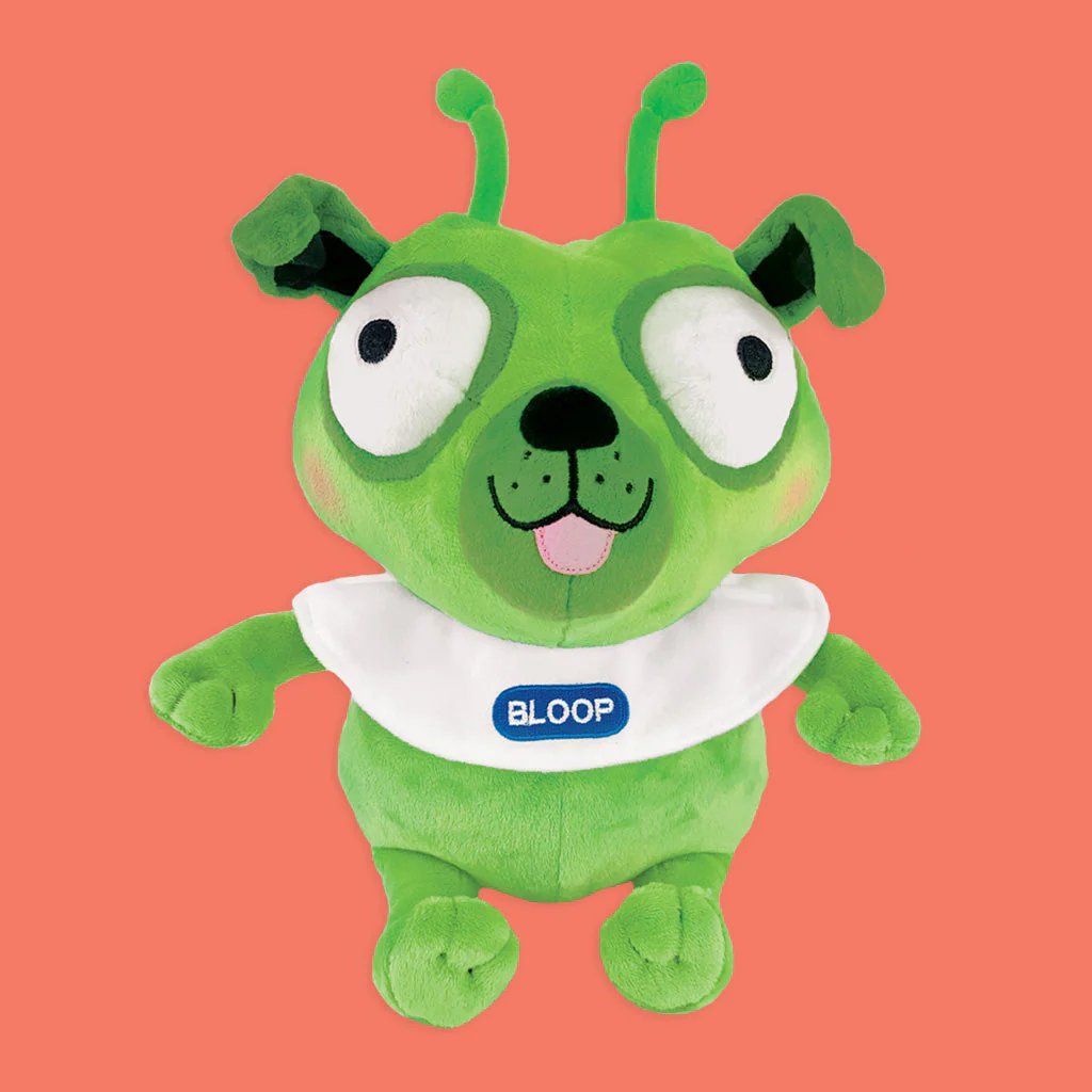 Bloop, the little green alien, must conquer Earth, and his first step is figuring out who’s in charge. The answer? Dogs! From the funny and futuristic book by Tara Lazar, and illustrated by Mike Boldt, comes a lesson in finding your place. Bloop doll is made with bright green plush, a soft fabric collar (not to be mistaken as a dog cone), and bold embroidered details. This out-of-this world storytime companion is sure to encourage readers to shoot for the stars!