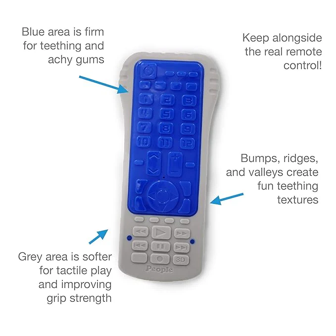 Does your baby love to chew on your phone and the remote control? we have that problem too! the brain builders baby-clicker remote control baby teether is straight forward and baby will love it more than the real thing. trade with them for the real thing and watch as they teeth away. keep an extra in your bag and one right next to the remote control. easy to clean and a sanitary alternative for baby.