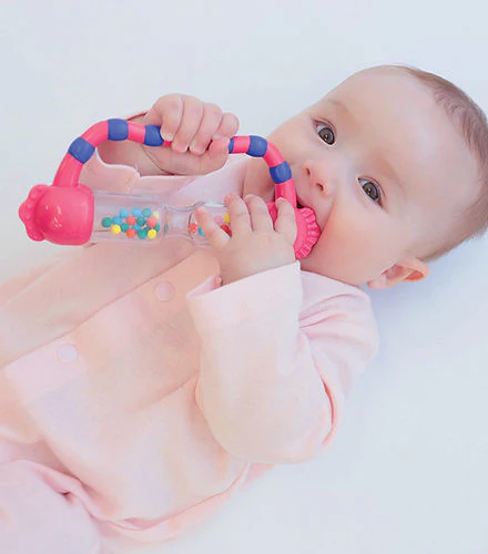Different sights and sounds are critical for any developing baby’s mind. So to help stimulate the senses, the Time to Shake Rattle uses colorful beads that move left and right – catching the attention of your baby’s eyes and ears and helping them to develop volition and concentration at an early age.