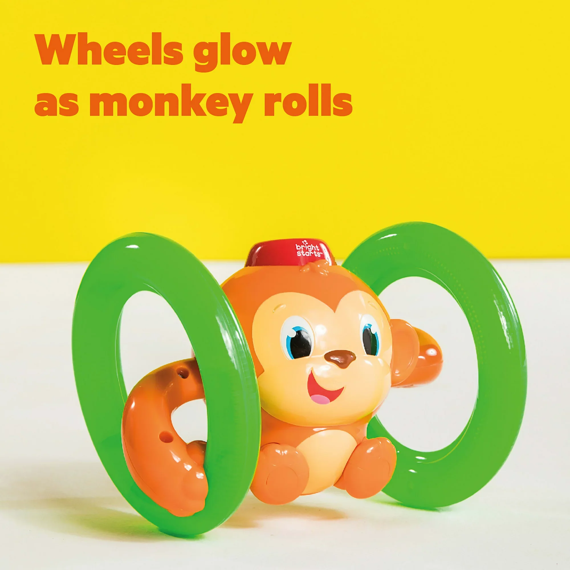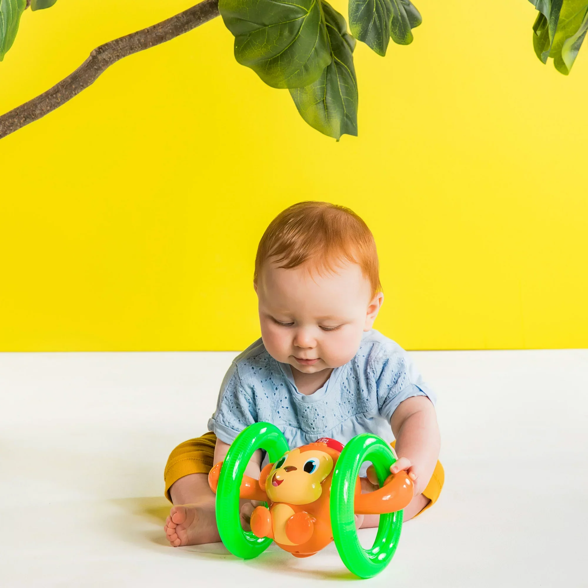 With just a tap on the head, the Bright Starts Roll & Glow Monkey is off sending you and your baby on a wild monkey chase! Follow your wobbly toddler or crawler as she races after her silly animal friend. Every roll is a laugh riot, so get ready to share lots of giggles with the baby. To add to the belly laughs, this wild toy lights up and plays music. When your little one finally catches up, just press the button and begin again. Go ahead, monkey around with this light-up game that will keep you and baby chasing after more!