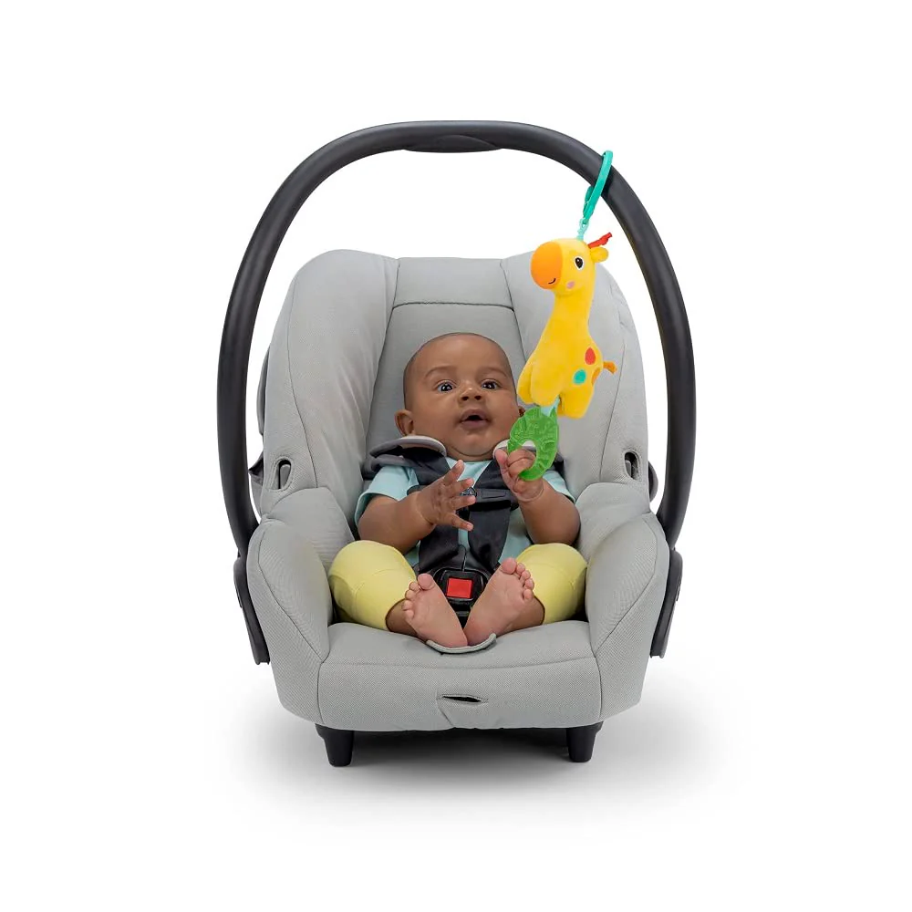 Tug on the tunes, baby! With every gentle pull on the Bright Starts Tug Tunes Giraffe, your baby will crank up the music. This musical toy is made to hang out with baby just about anywhere and everywhere. Clip it on the stroller, carrier, toy bar, and more. You and your baby will have a soundtrack wherever you go. When baby tugs on the green leaf handle, his jungle buddy plays 4 different jingles!