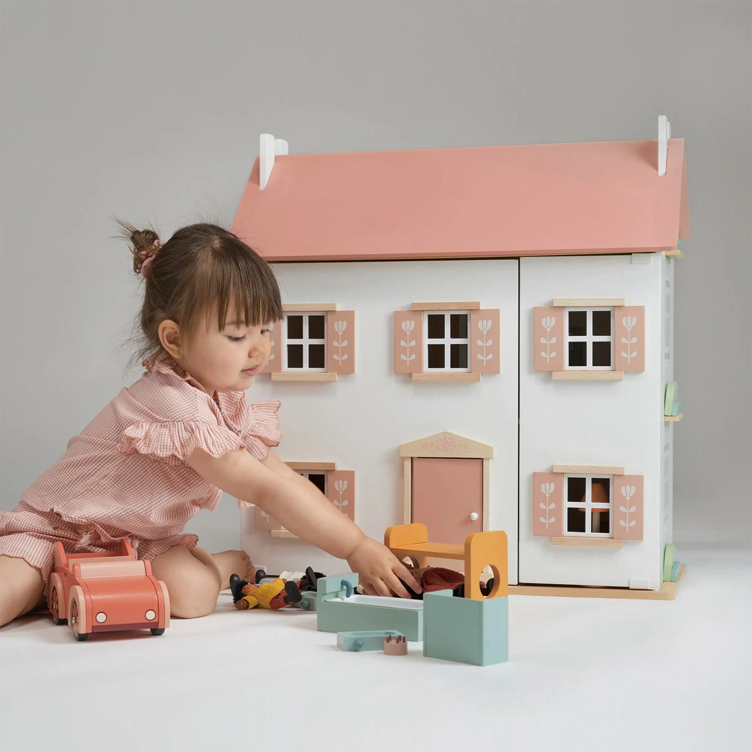 Dolls and furniture sold separately.