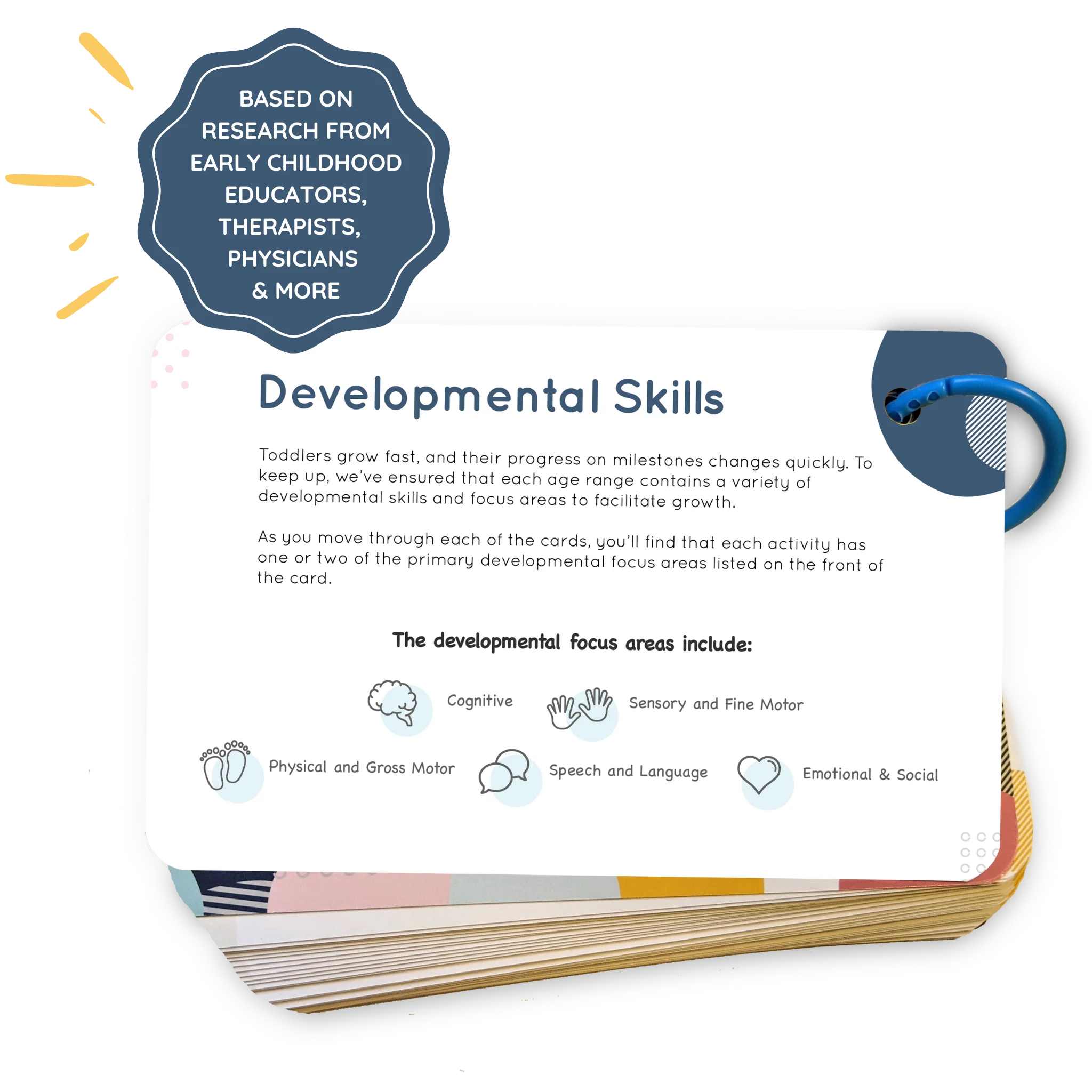 - 40+ creative playtime activities developed along with physical therapists, speech and language pathologists, pediatricians, nurse practitioners, early childhood development educators, child-centric experts, and more!