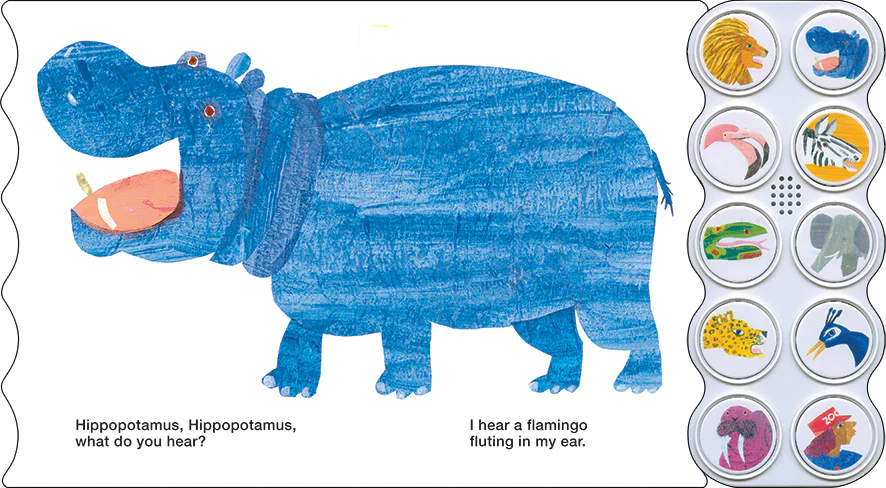 - As each new animal appears on the bright, colorful pages, children will love to find, then press the right button to hear the noises that the braying zebra, roaring lion, fluting flamingo and other amazing animals make.