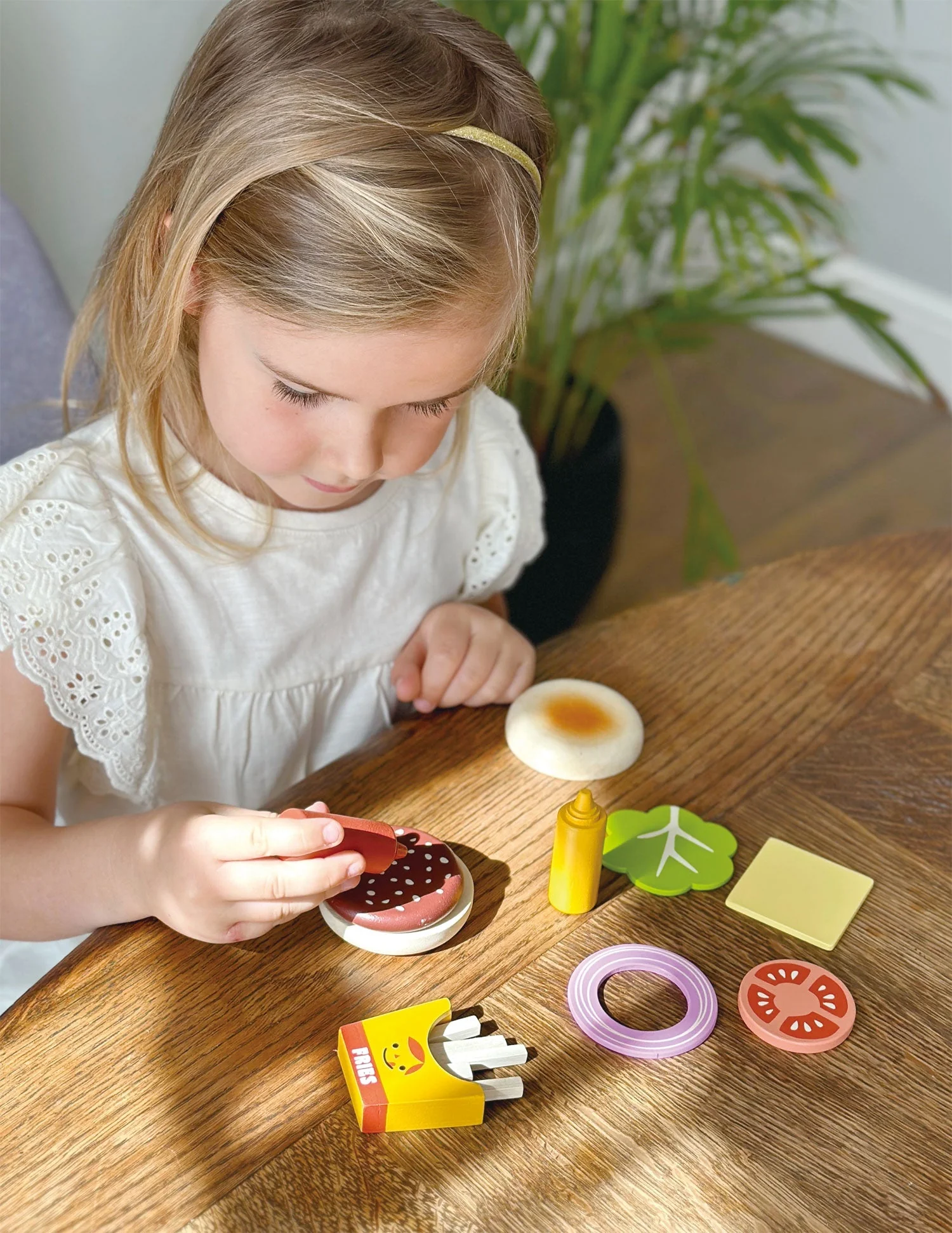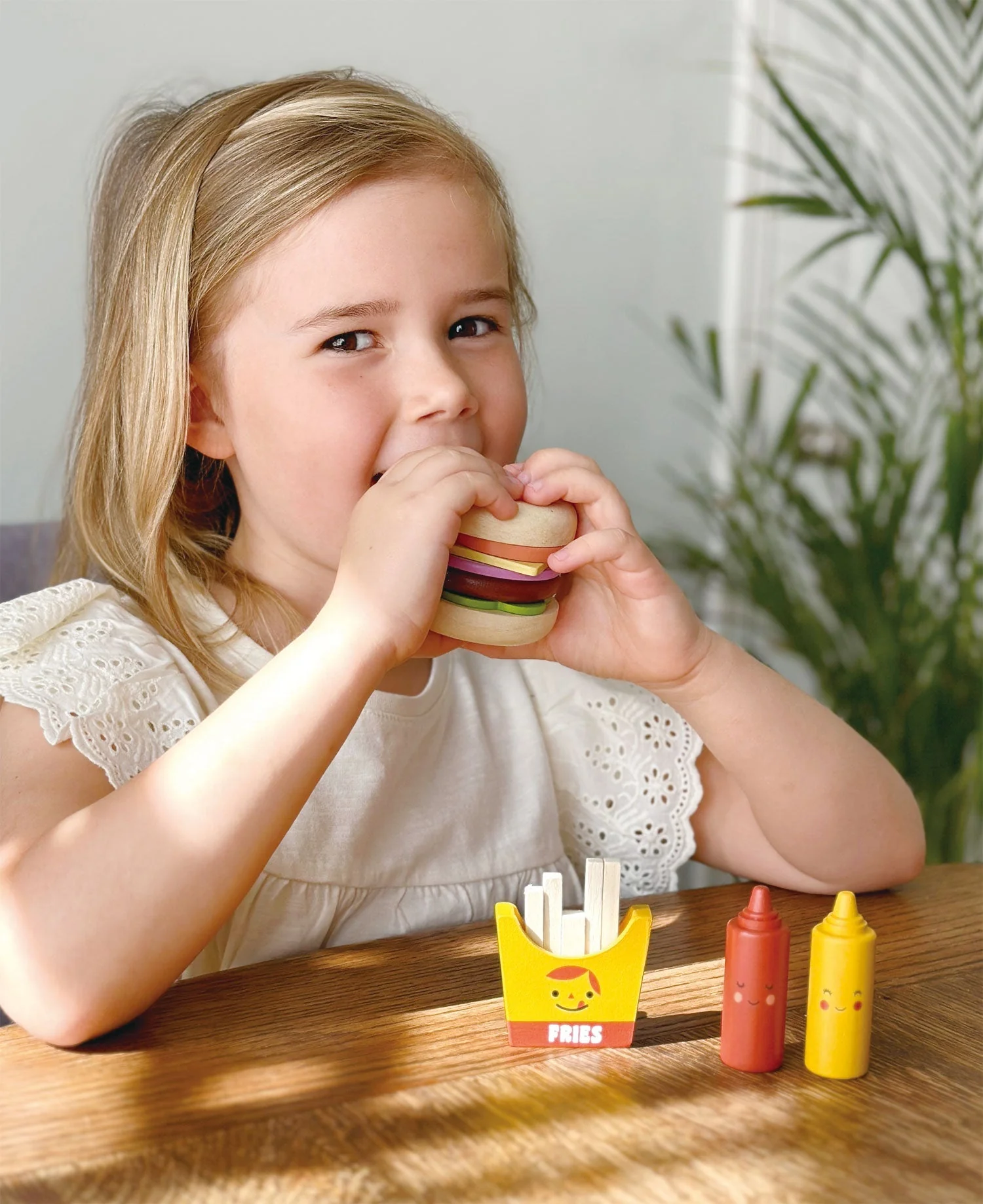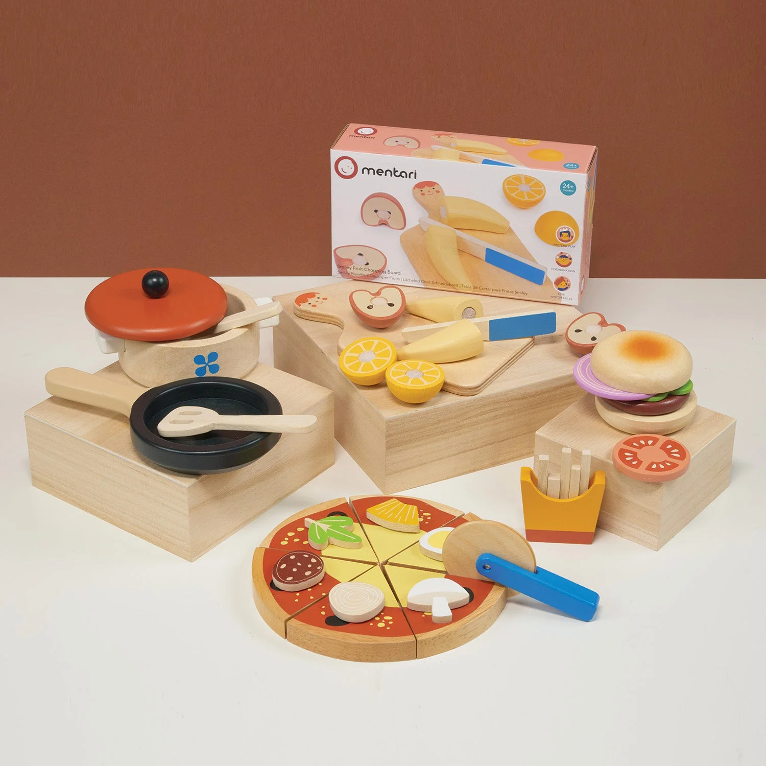 Dive into the lively world of make-believe munchies with our 'Fast Food Bundle' – an array of pretend play delights perfect for little chefs and foodies. The Casserole Pan Set gets the culinary adventure sizzling with a pot and pan, ideal for stirring imaginative recipes. Next, the Smiley Fruit Chopping Board offers a slice of fun with velcro-attached fruits that can be 'chopped' using the child-safe knife, teaching coordination and knife skills while beaming with a friendly smile. But what's fast food without a classic pizza? Our Take-Out Pizza is a feast for the eyes, a 6-portion treat kids can slice with a rotary pizza cutter and personalize with various toppings, practicing fractions and sharing as they serve up slices. The Take-Out Burger Set turns stacking into an art form, as youngsters assemble their dream burger with a selection of toppings, along with a side of fries to complete the meal. Every item in this bundle is designed for hands-on play, social interaction, and developing fine motor and cognitive skills. It's a playful journey through the flavors of fun, where every child is the star of their own fast-food franchise.