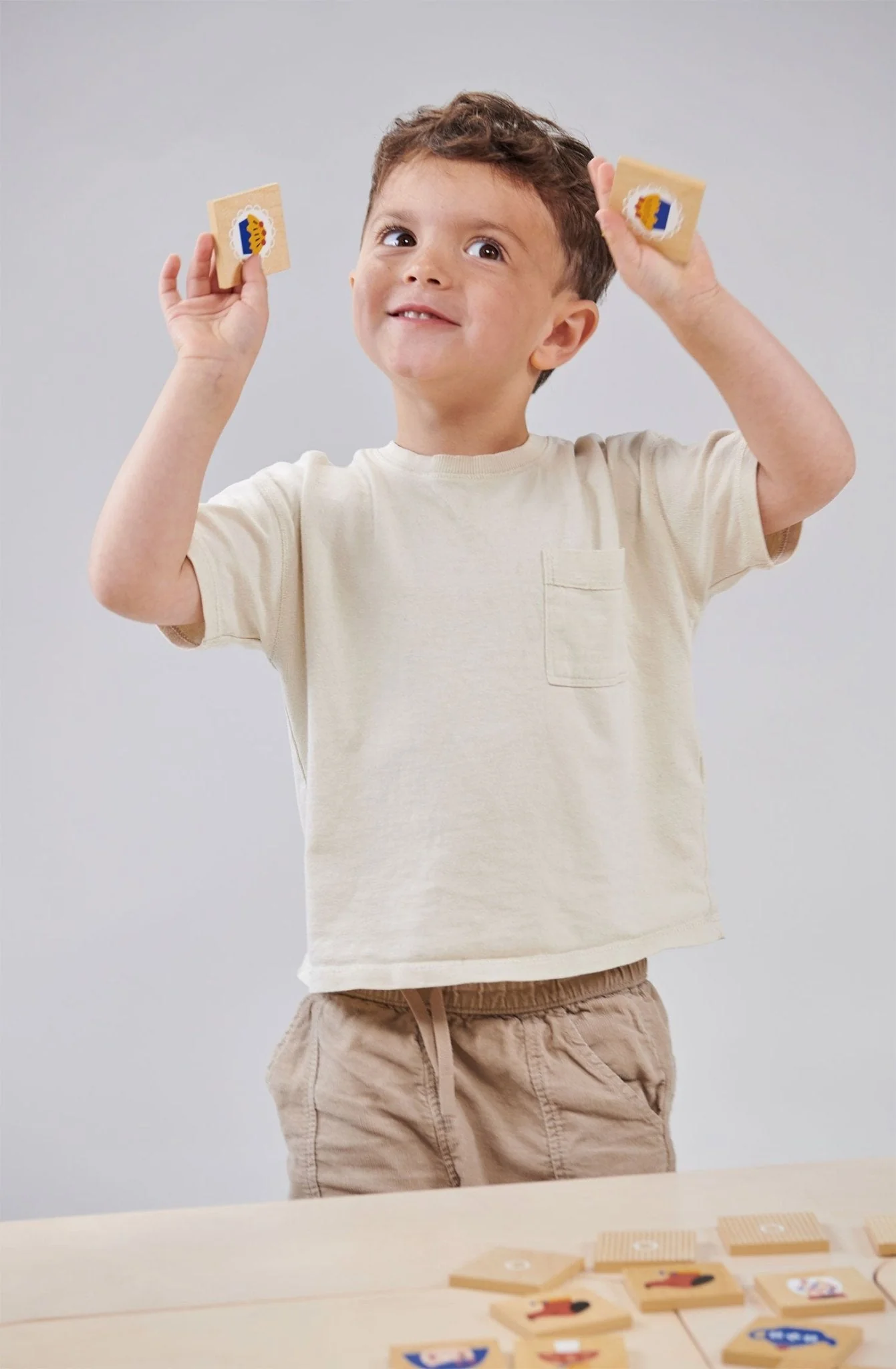 Delight your child with the 'Games Bundle,' a trio of engaging and educational games designed to entertain while teaching valuable skills. First in the set is the 'Fishing Game,' which will hook your little one's attention. It features a magnetic fishing rod that 'catches' seven charming sea creatures, each eagerly waiting to be fished from imaginary waters. The game is neatly packed in a pencil-case bag with a blue wave interior, perfect for on-the-go play. Next, test your child's recall with the 'Memory Game'. It includes 32 pieces adorned with beautifully illustrated, easy-to-recognize objects like a cheerful sun, a crescent moon, a playful dog, and a colorful balloon. This memory-boosting game is housed in an illustrated drawstring bag for easy storage. Lastly, the 'Town Puzzle' invites children to a hands-on exploration of community life. With 17 removable pieces that fit into a vibrant town scene, it's a wonderful way for kids to enhance their matching skills and learn about different town elements. This 'Games Bundle' is an exceptional set for fostering fine motor development, memory, and cognitive skills, all through the joy of play.