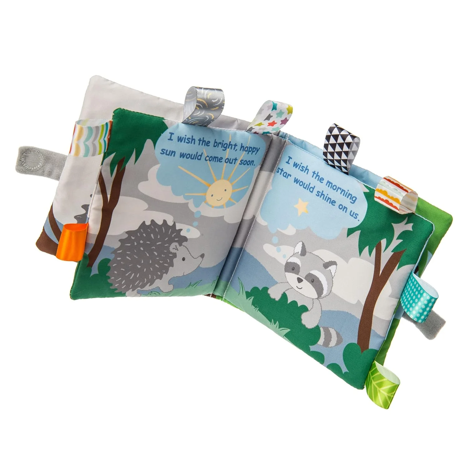 Encourage your child's love of reading with a sweet story from Taggies Soft cloth books. At 6 x 6-inches with 8 fabric pages and a soft applique on the cover, Taggies Soft books are perfect for story time with baby. Book's pages feature a crinkle paper lining and a squeaker inside. With lots of attached tags to explore, baby can bend, squeeze, and even chew on the pages while snuggling during story time. With truly innovative attributes and small beginnings, Taggies has revolutionized and redefined how little ones feel secure and engaged in play. Taggies was born when a mom noticed her child's fascination with satin tags, and blossomed into a world of treasured products. Exploring Taggies textured tags can provide tactile stimulation that babies crave for development and have an amazing calming effect on little ones. Taggies Signature Collection is recognized as the premium line of wonderfully soft and soothing Taggies toys made by Mary Meyer.