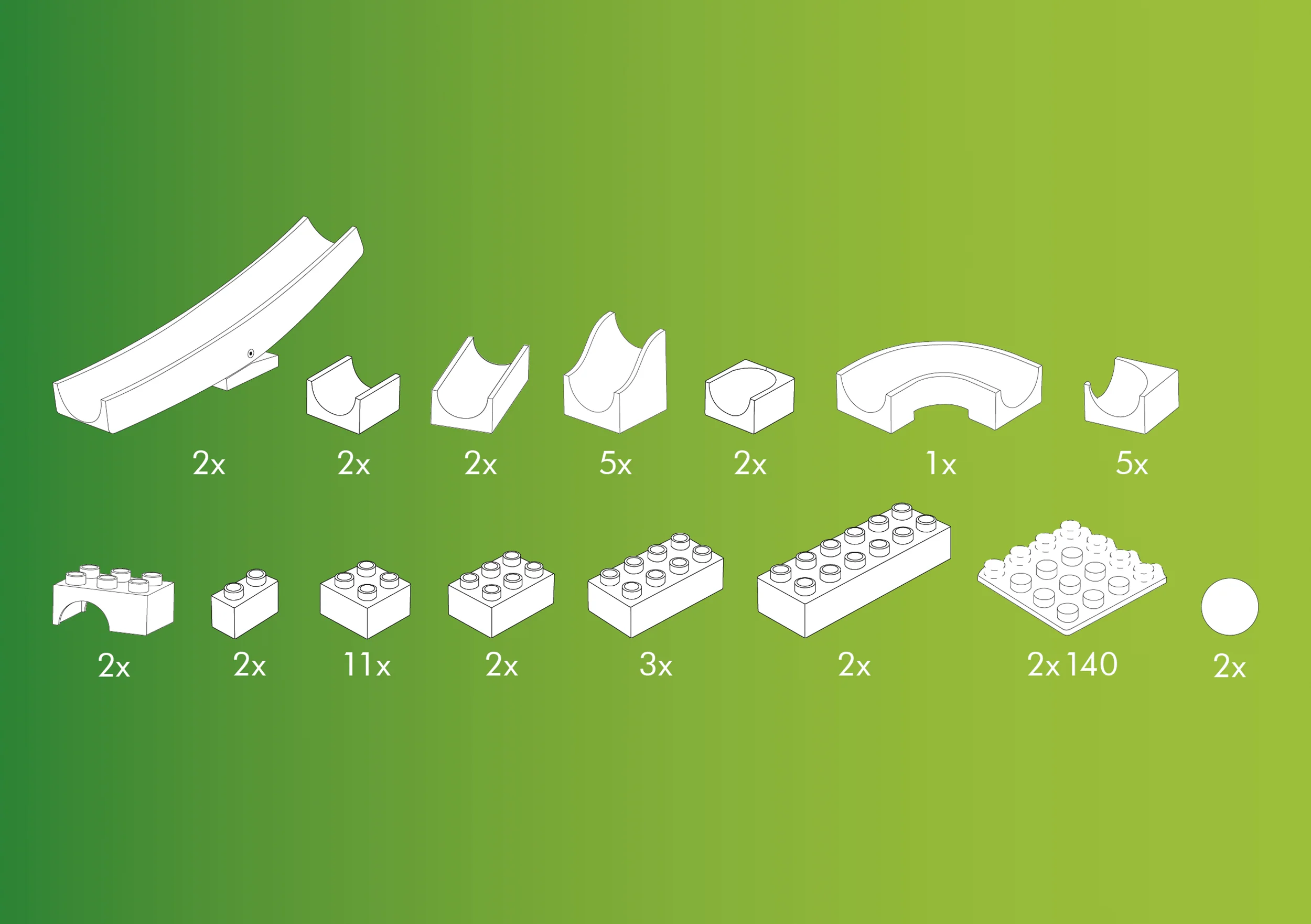 A complete stand alone set or can be used to expand on existing run elements largest action set. Engineered so that with enough speed, the ball will continue to roll through.