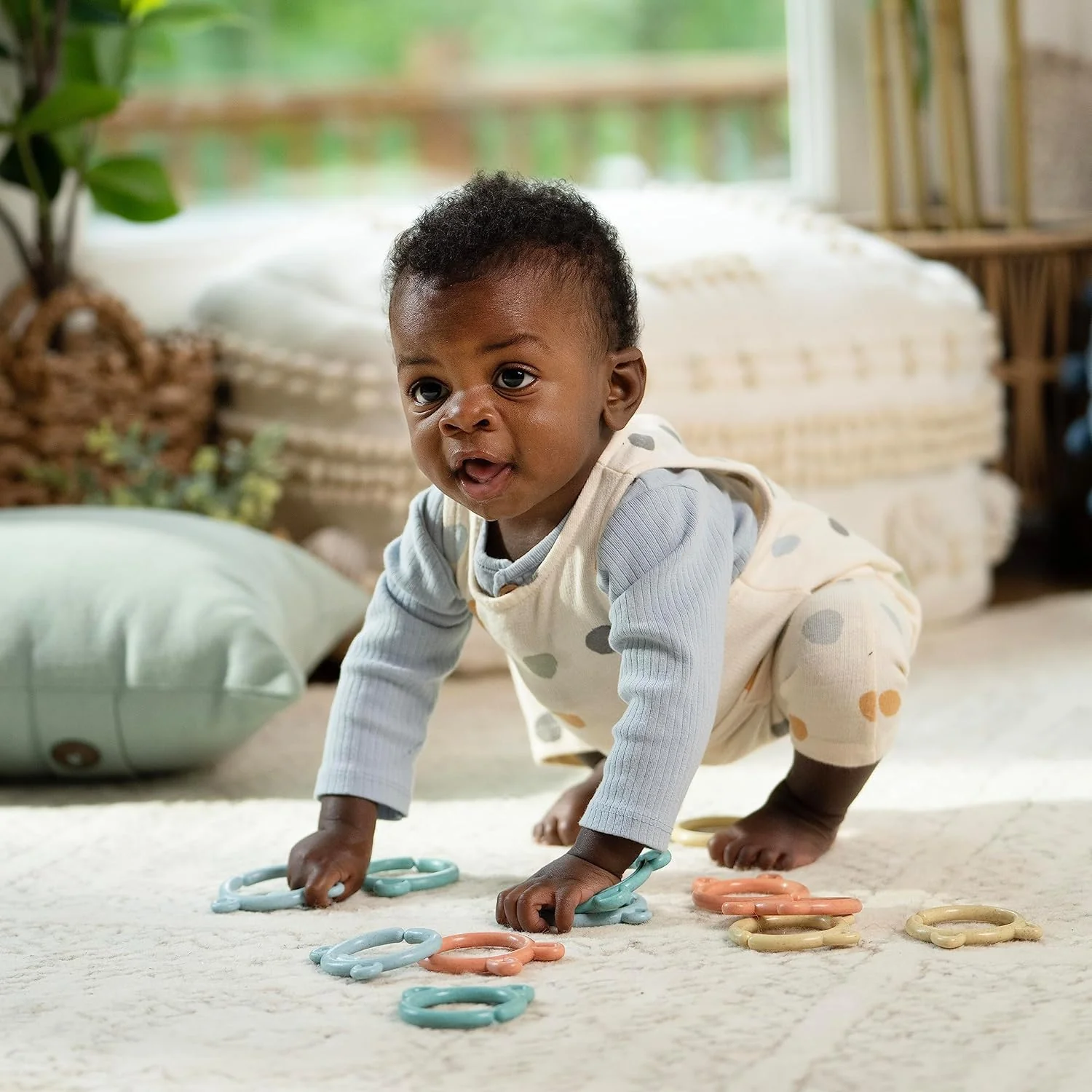 Introduce baby to the cutest crew ever with the Ingenuity Sheppy's Squad Toy Links! The nature-inspired character-shaped toys are made safe for babies, with 30% plant-based plastics.